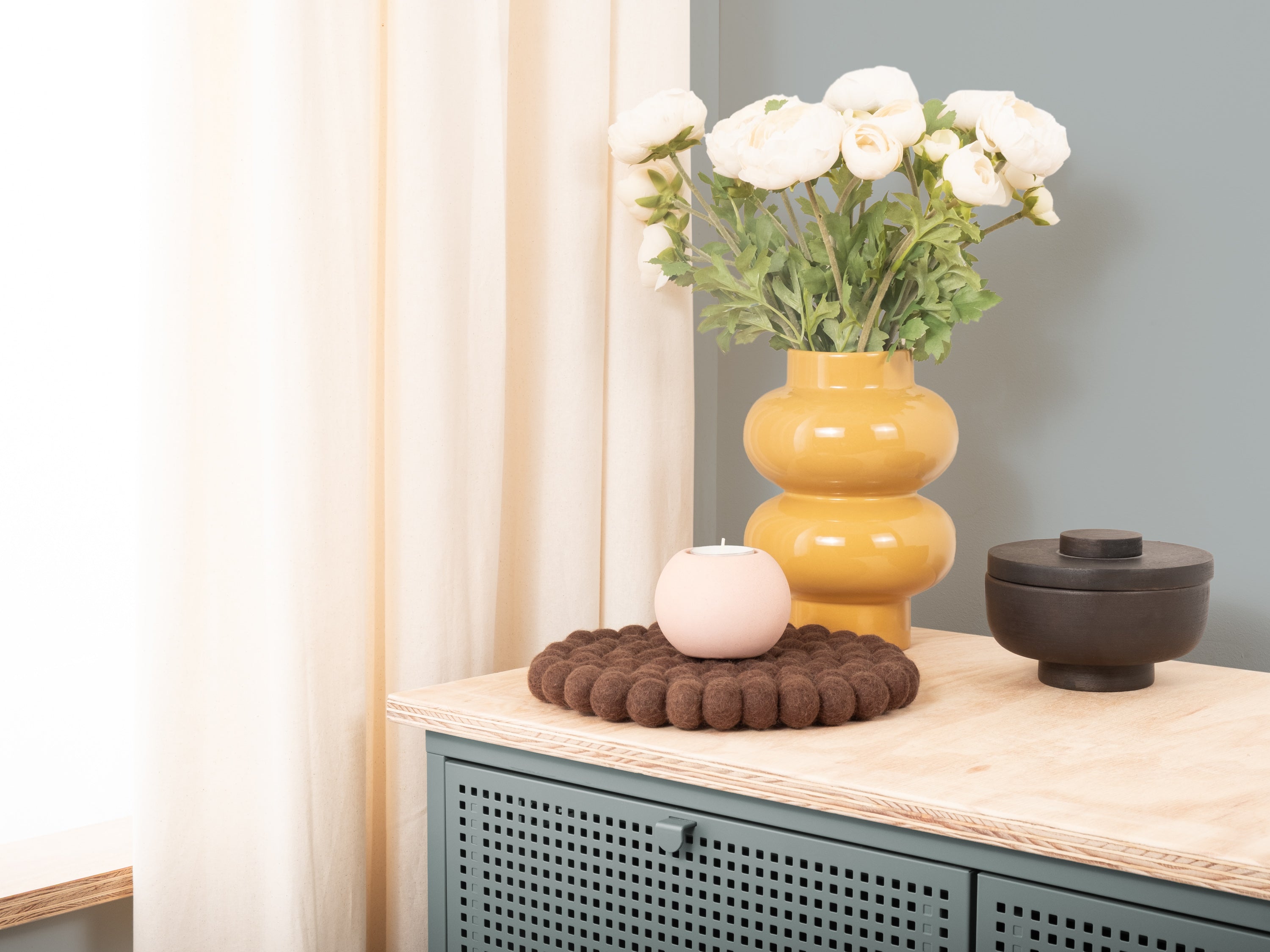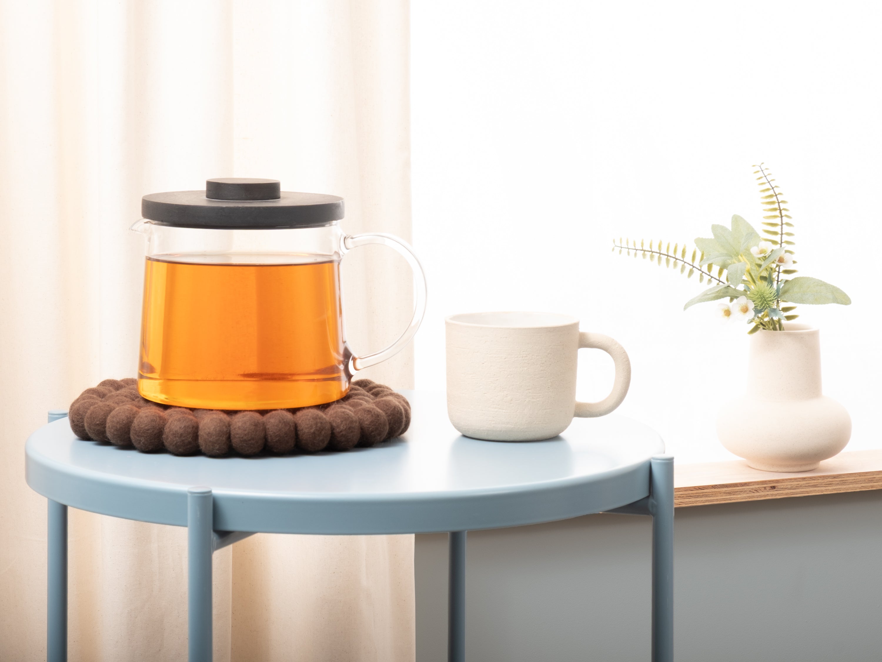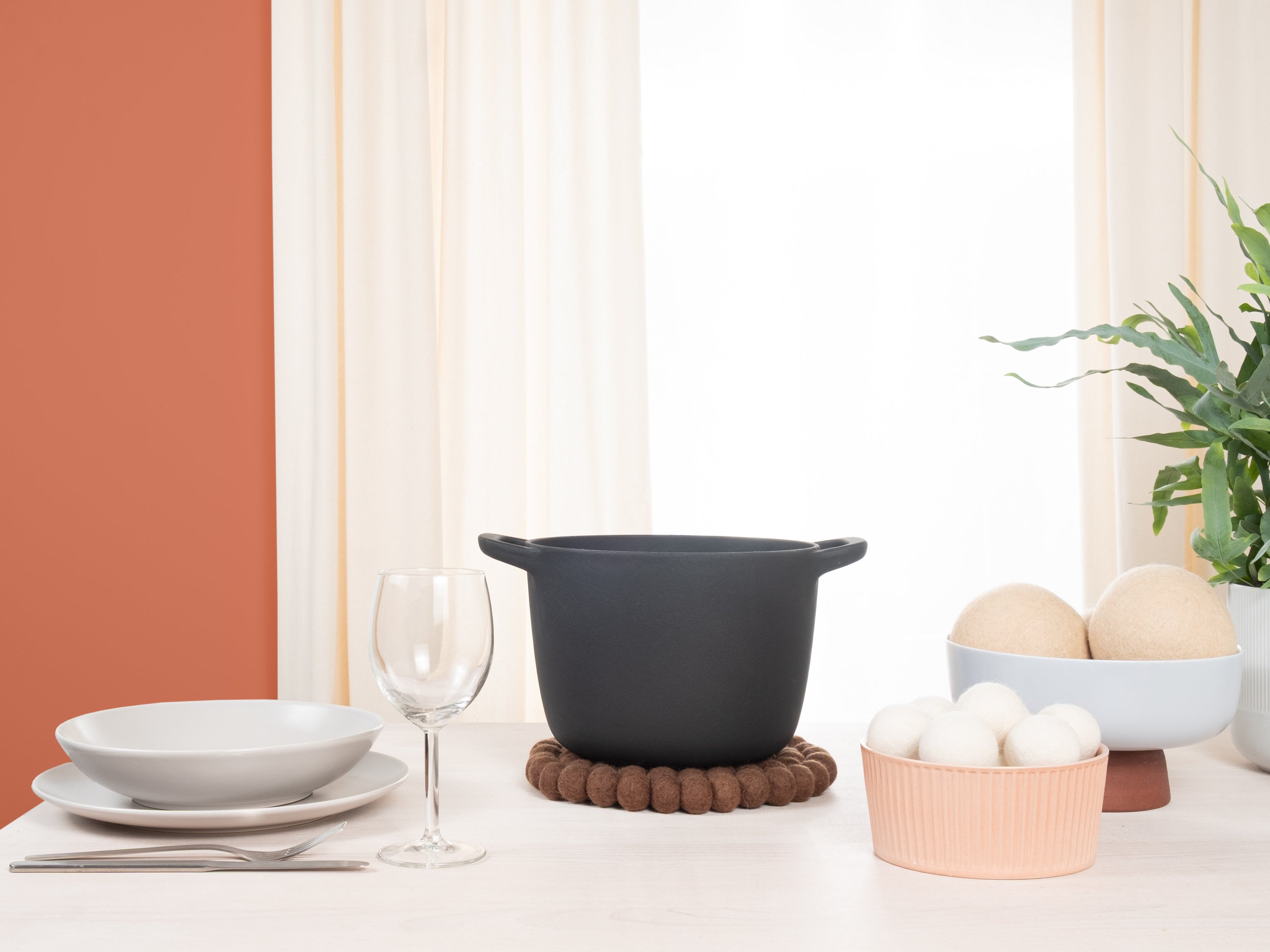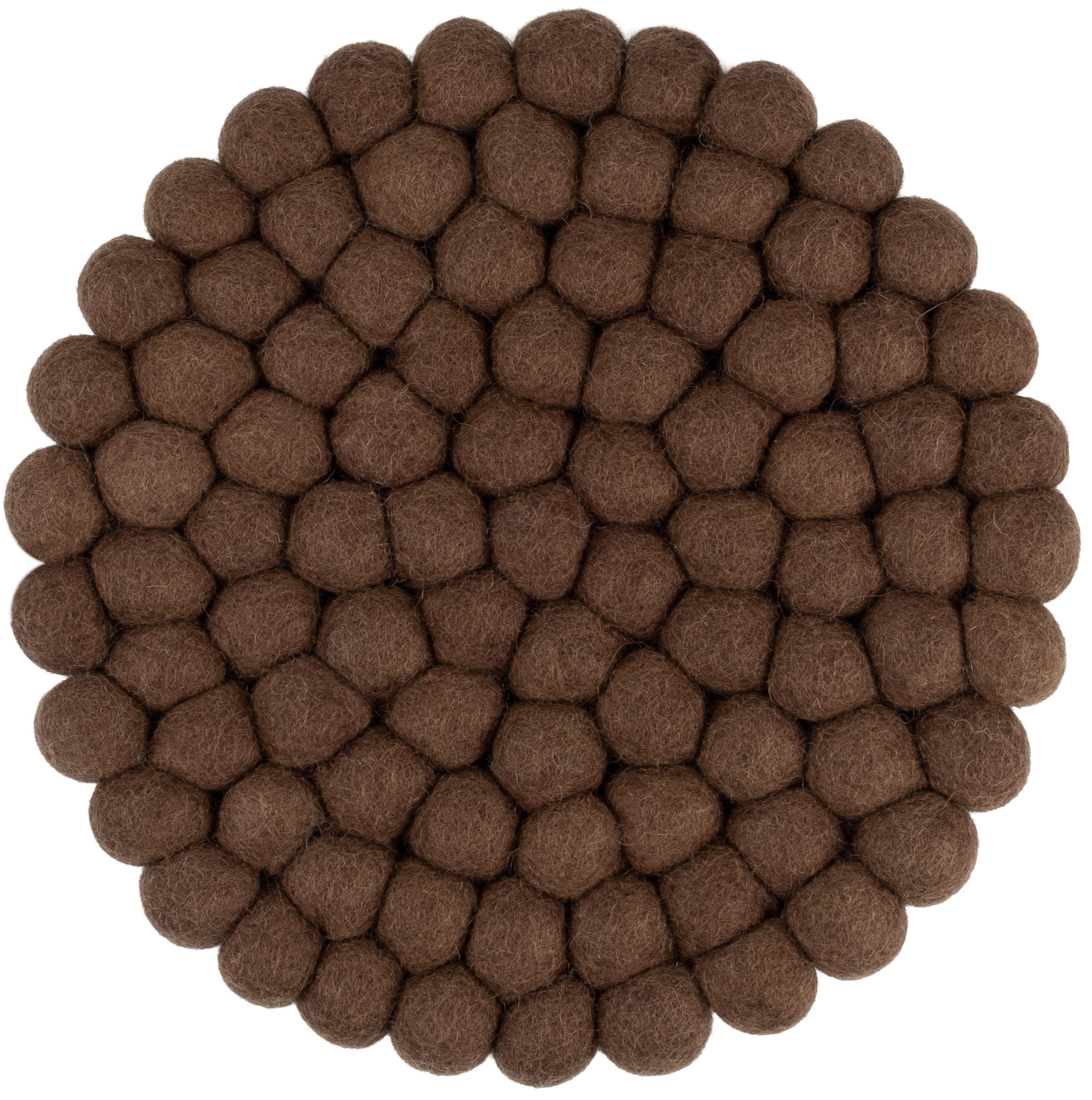 The trivet Egon in the colour brown combines functionality with charming design. Robust, heat-resistant, water- and dirt-repellent, and reversible. Made from pure new wool, handcrafted in Nepal under fair conditions.