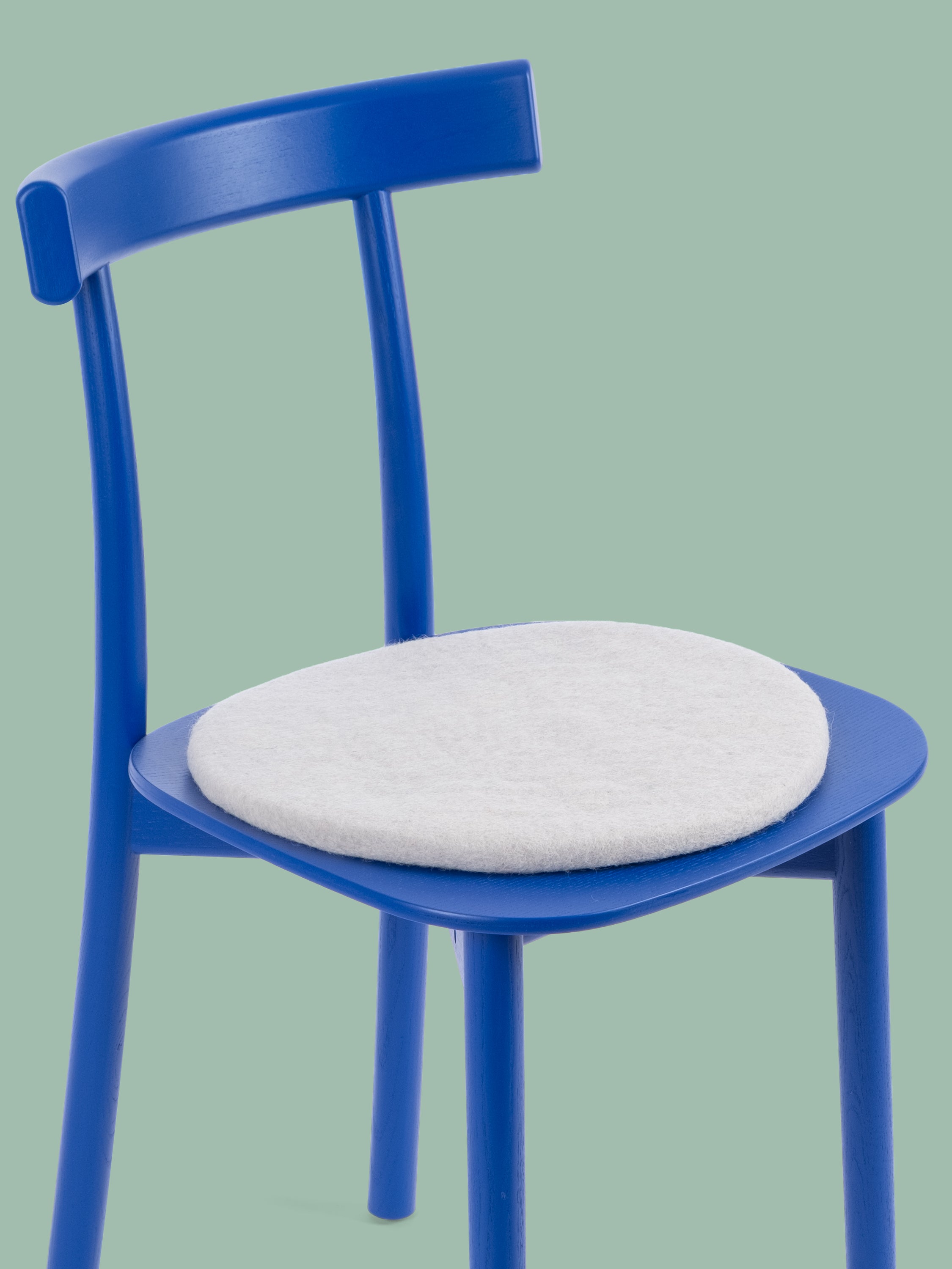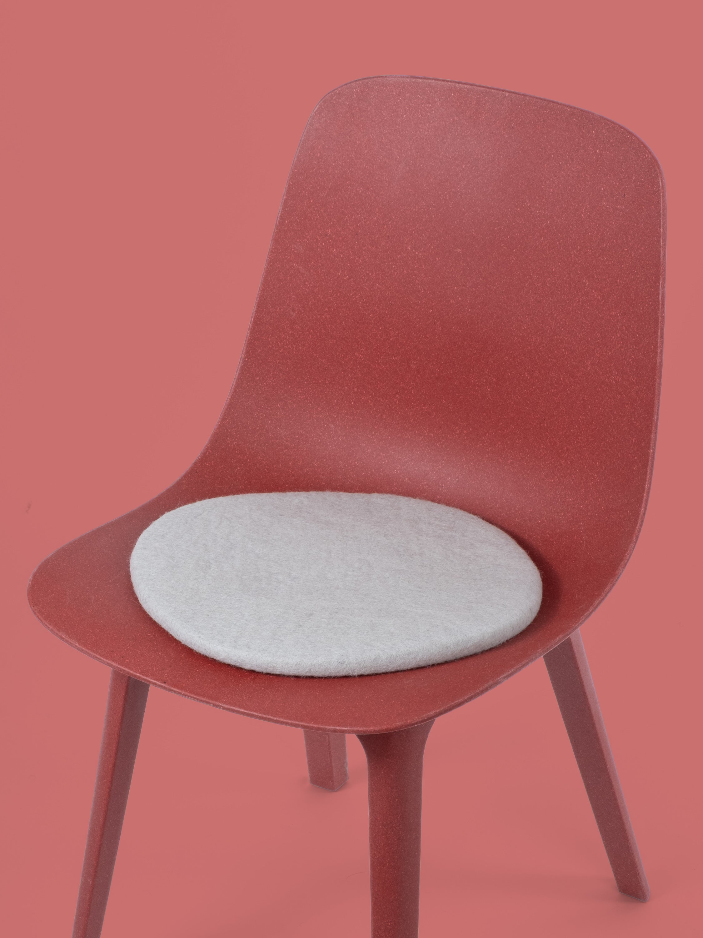 The light gray, flat seat pad Aven brings warmth and softness to your favorite chair. Made from pure new wool, handcrafted in Nepal and produced under fair conditions. myfelt seat pads are water- and dirt-repellent.