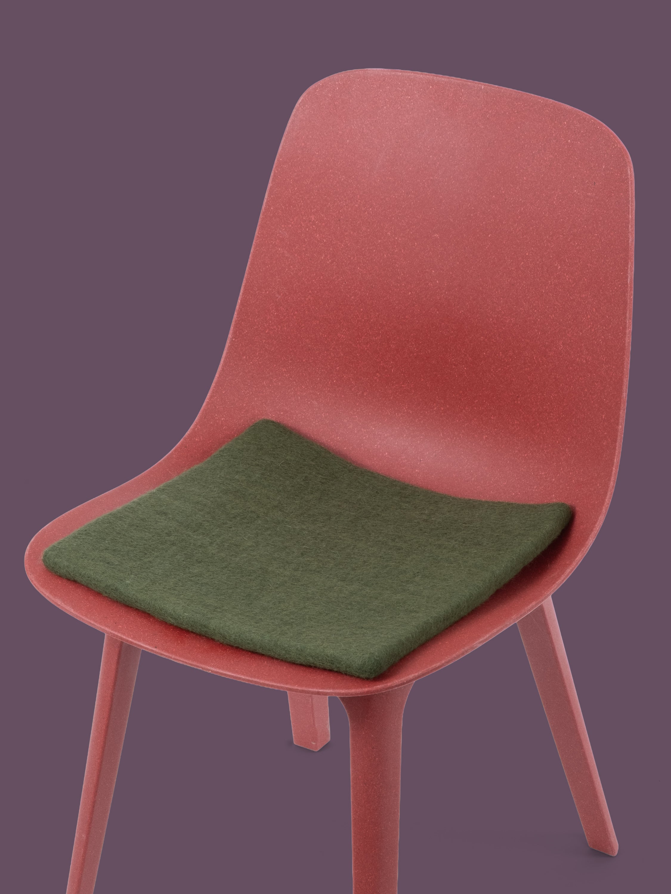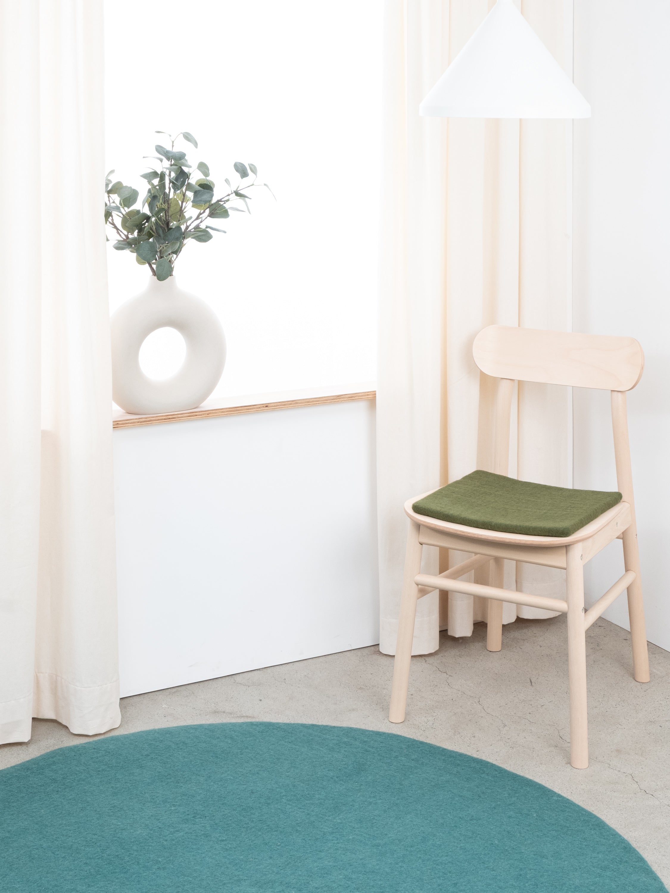 The dark green, flat seat pad Jost brings warmth and softness to your favorite chair. Made from pure new wool, handcrafted in Nepal and produced under fair conditions. myfelt seat pads are water- and dirt-repellent and can be used on both sides.