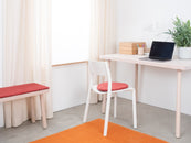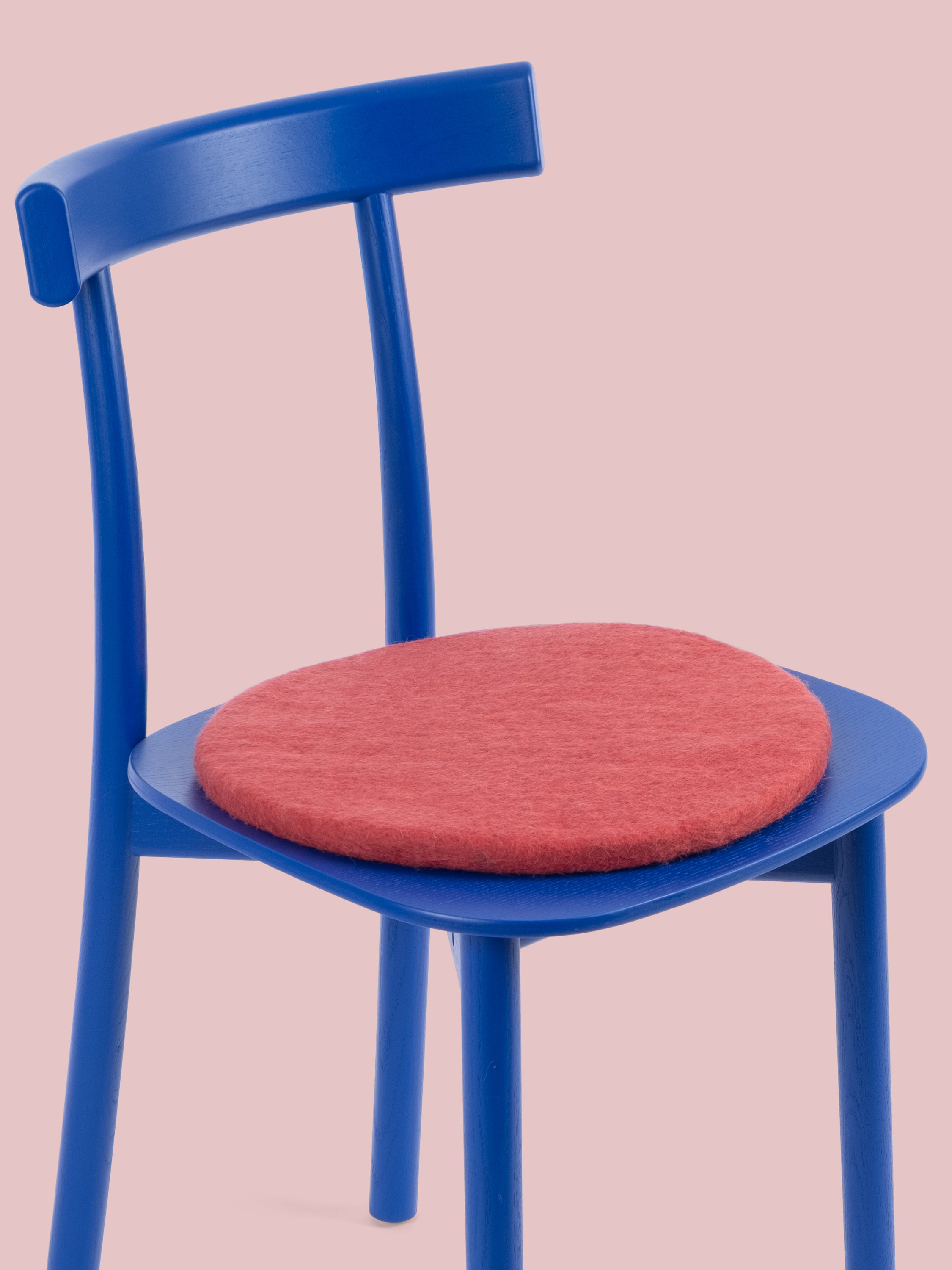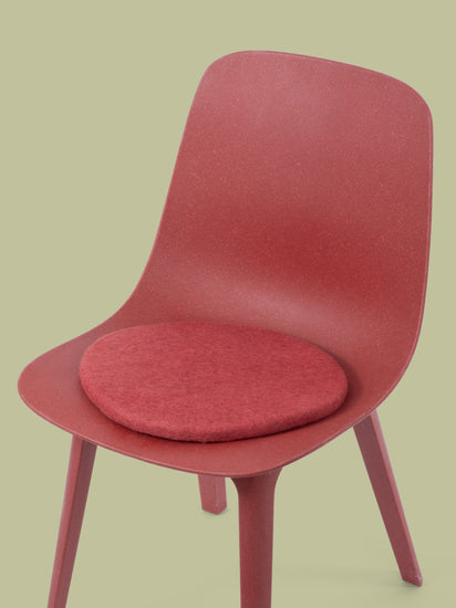 The wine red, flat seat pad Kaja brings warmth and softness to your favorite chair. Made from pure new wool, handcrafted in Nepal and produced under fair conditions. myfelt seat pads are water- and dirt-repellent and can be used on both sides.