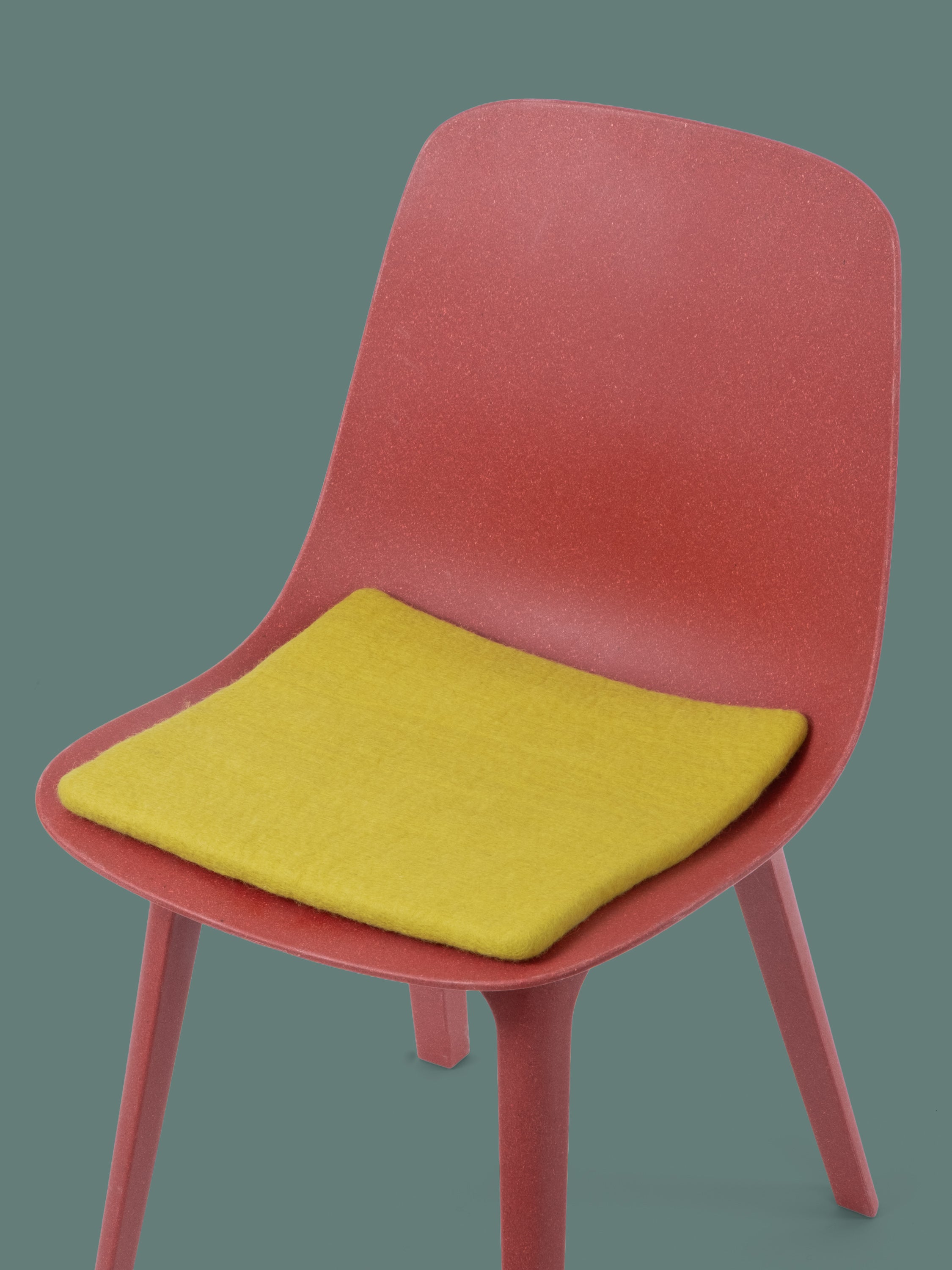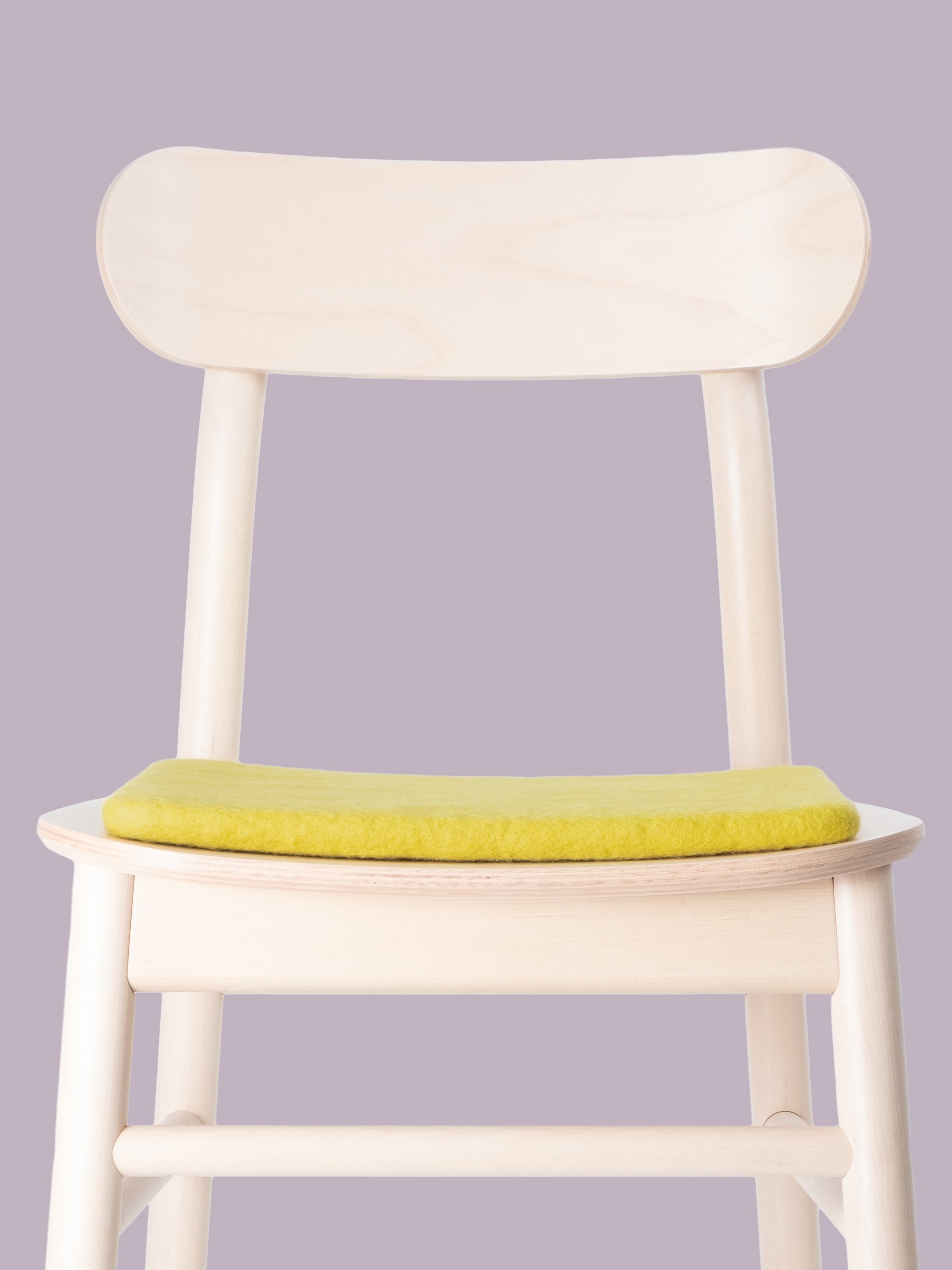 The green-yellow, flat seat pad Kata brings warmth and softness to your favorite chair. Made from pure new wool, handcrafted in Nepal and produced under fair conditions. myfelt seat pads are water- and dirt-repellent and can be used on both sides.