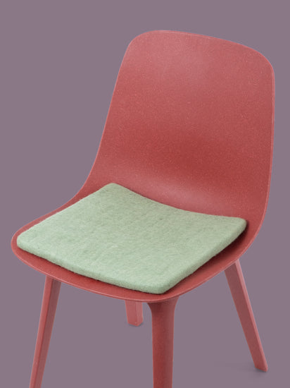 The light green, flat seat pad Lasse brings warmth and softness to your favorite chair. Made from pure new wool, handcrafted in Nepal and produced under fair conditions. myfelt seat pads are water- and dirt-repellent and can be used on both sides.