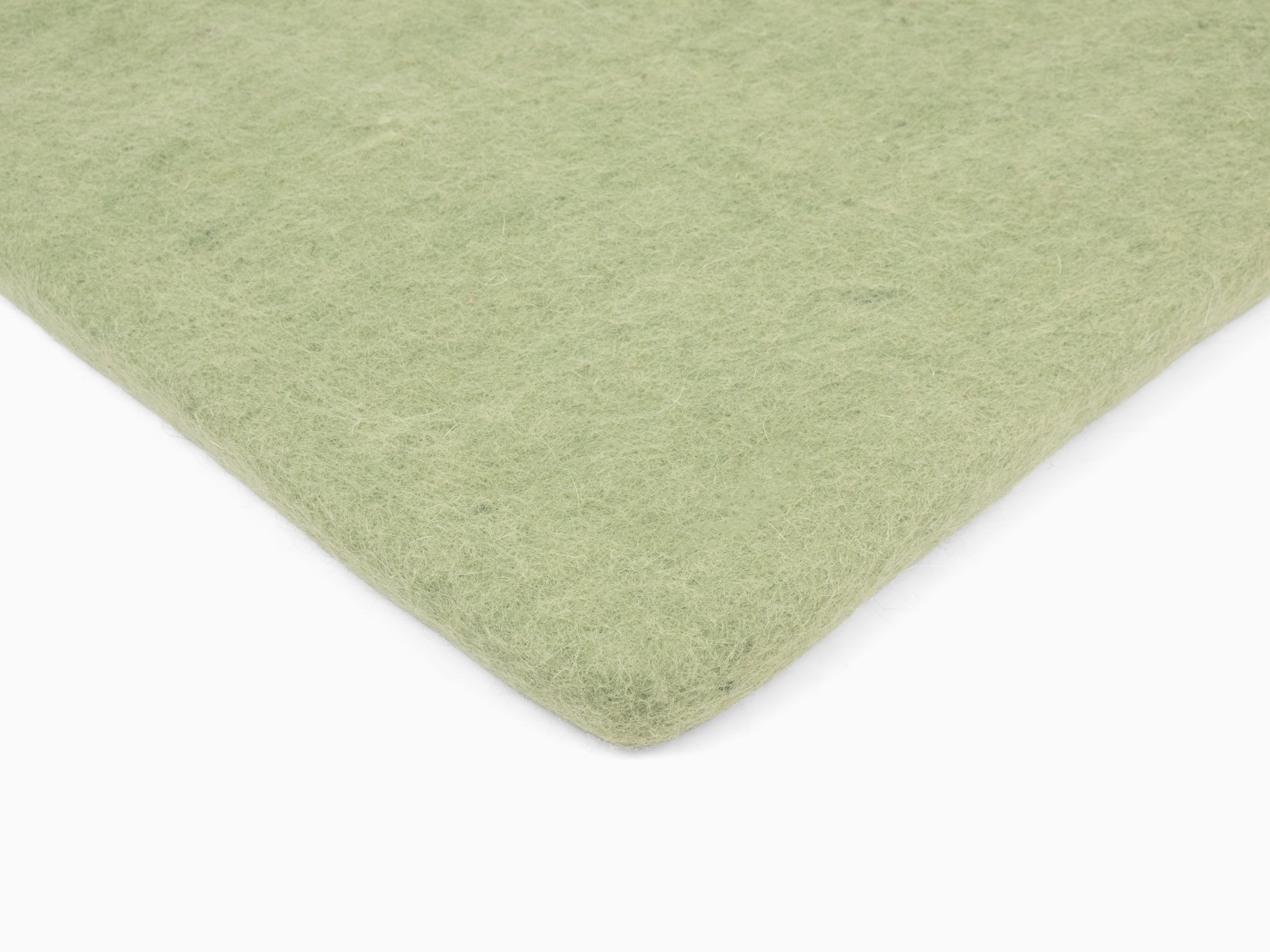 Square, light green flat seat pad made of pure new wool.