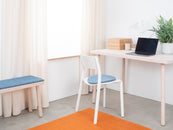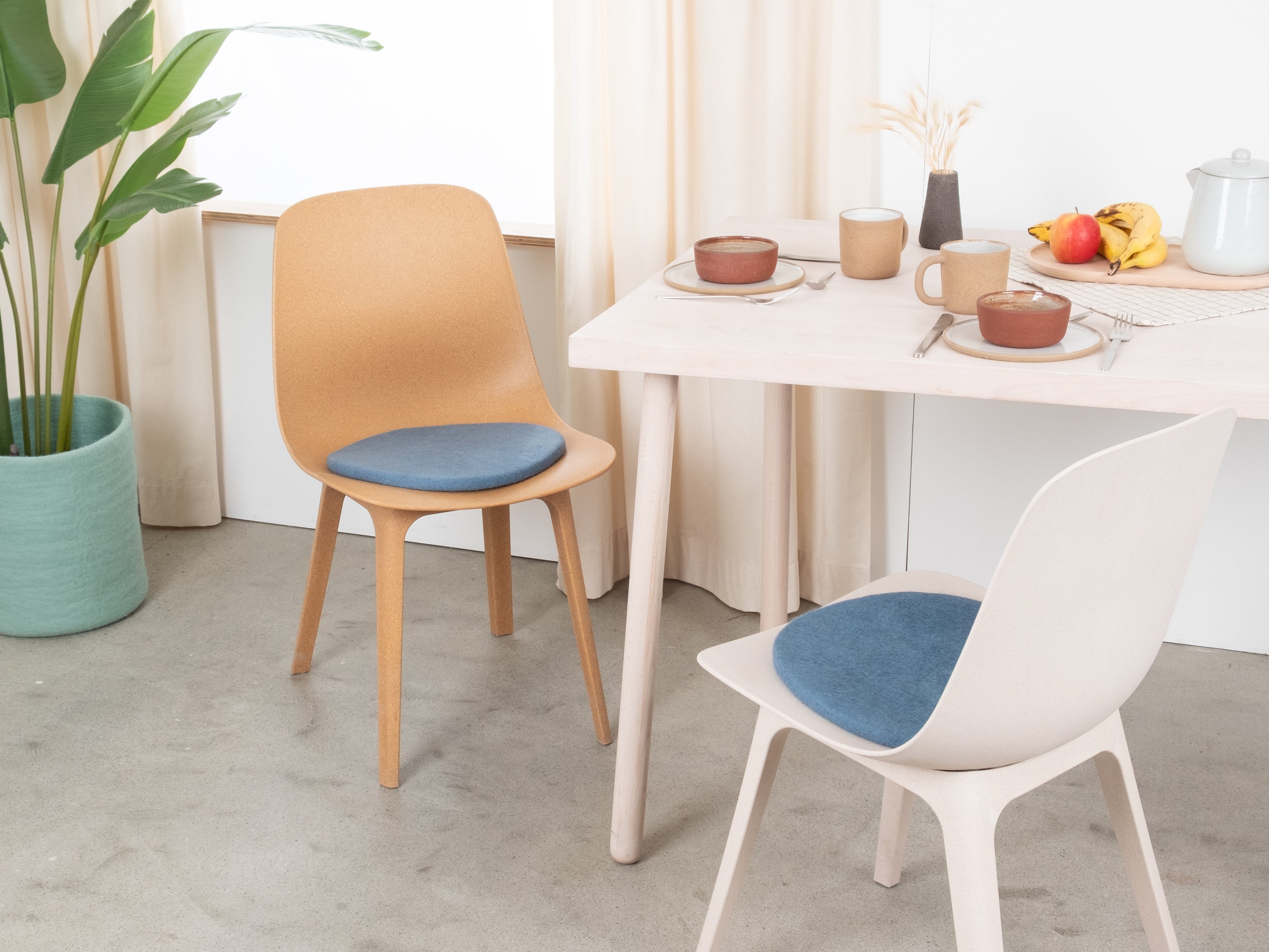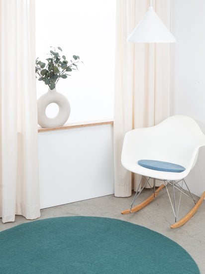 The blue, flat seat pad Nilo brings warmth and softness to your favorite chair. Made from pure new wool, handcrafted in Nepal and produced under fair conditions. myfelt seat pads are water- and dirt-repellent and can be used on both sides.