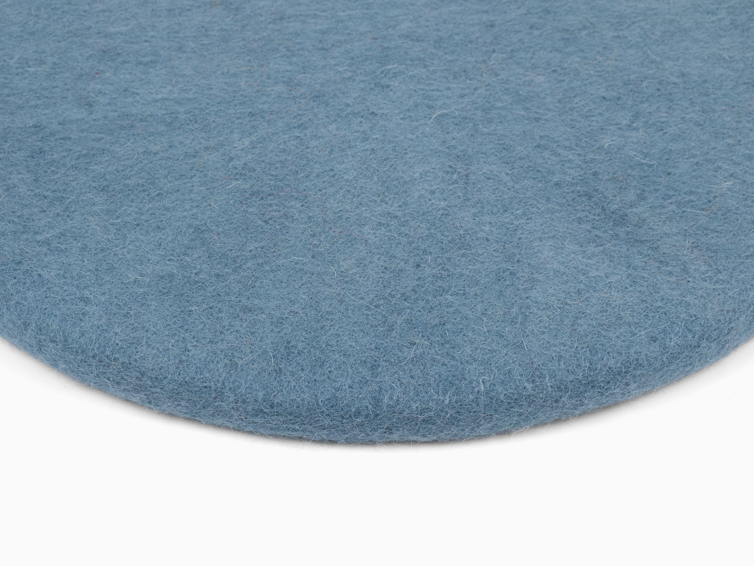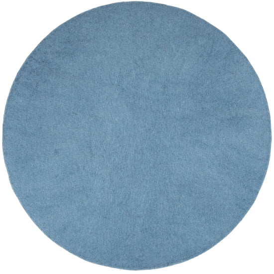 Round, blue flat seat pad made of pure new wool.