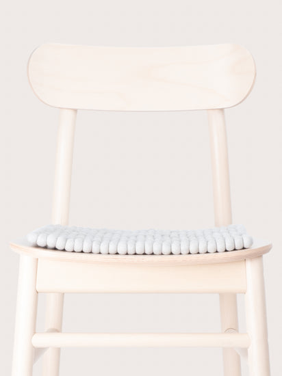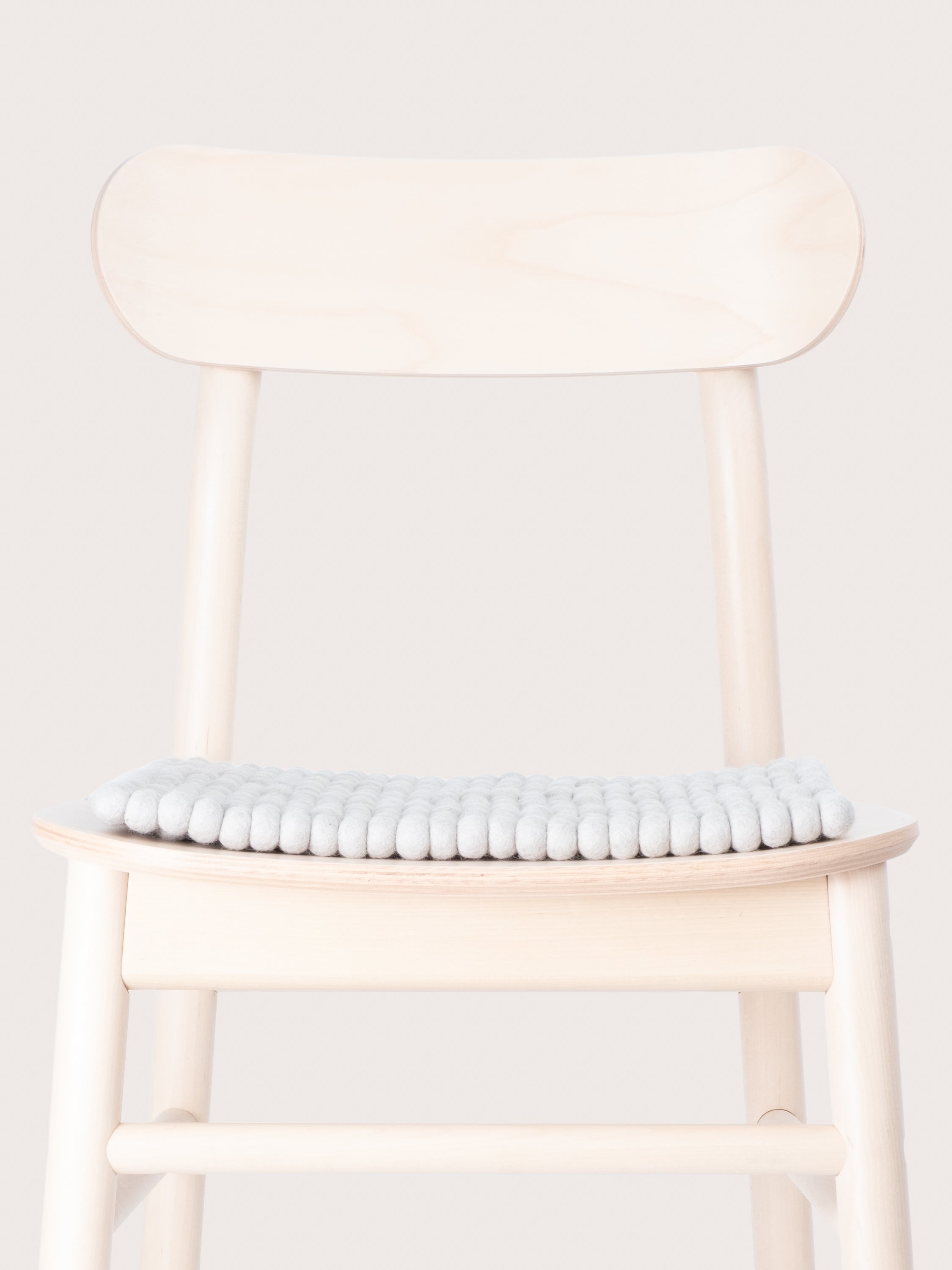 The light gray seat pad Aven brings warmth and softness to your favorite chair. Made from pure new wool, handcrafted in Nepal and produced under fair conditions. myfelt seat pads are water- and dirt-repellent and can be used on both sides.