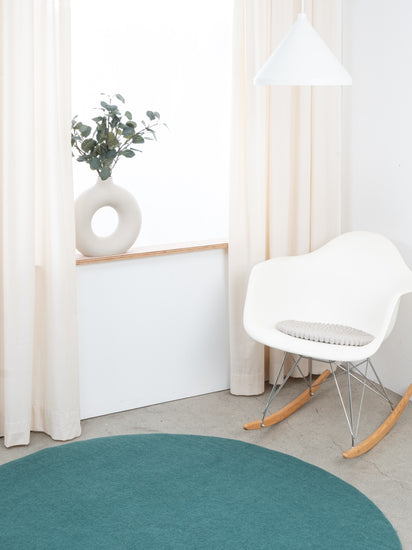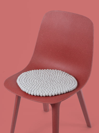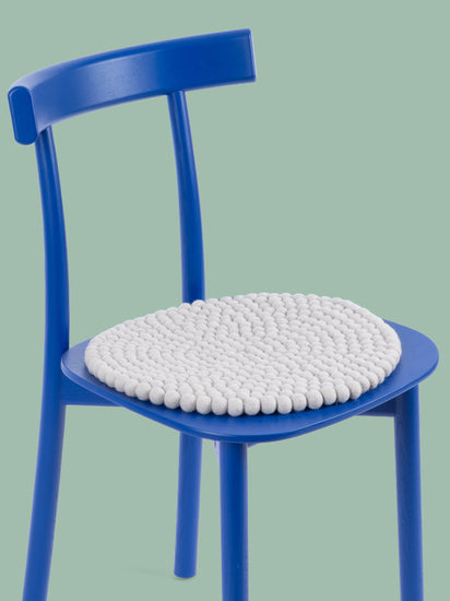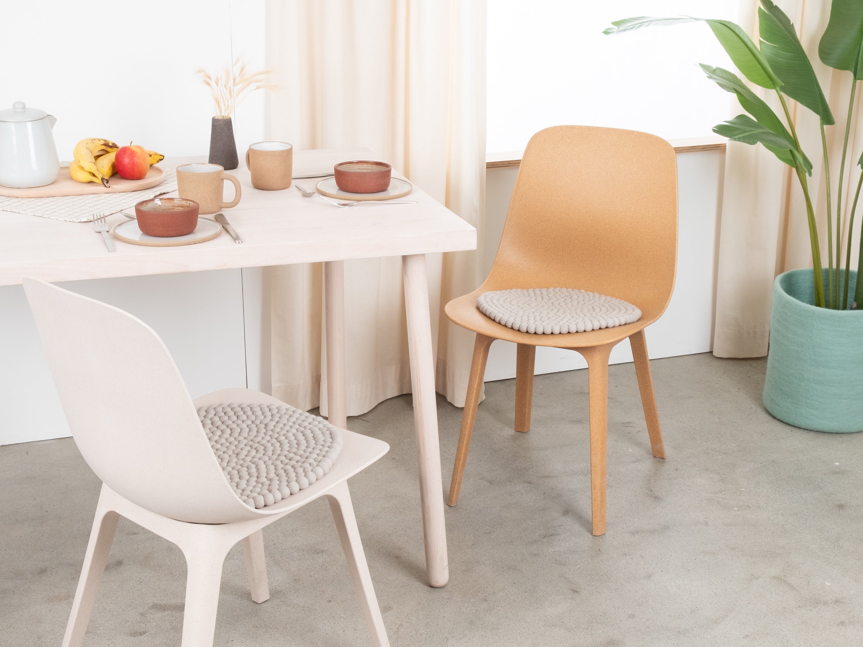 The light gray seat pad Aven brings warmth and softness to your favorite chair. Made from pure new wool, handcrafted in Nepal and produced under fair conditions. myfelt seat pads are water- and dirt-repellent and can be used on both sides.