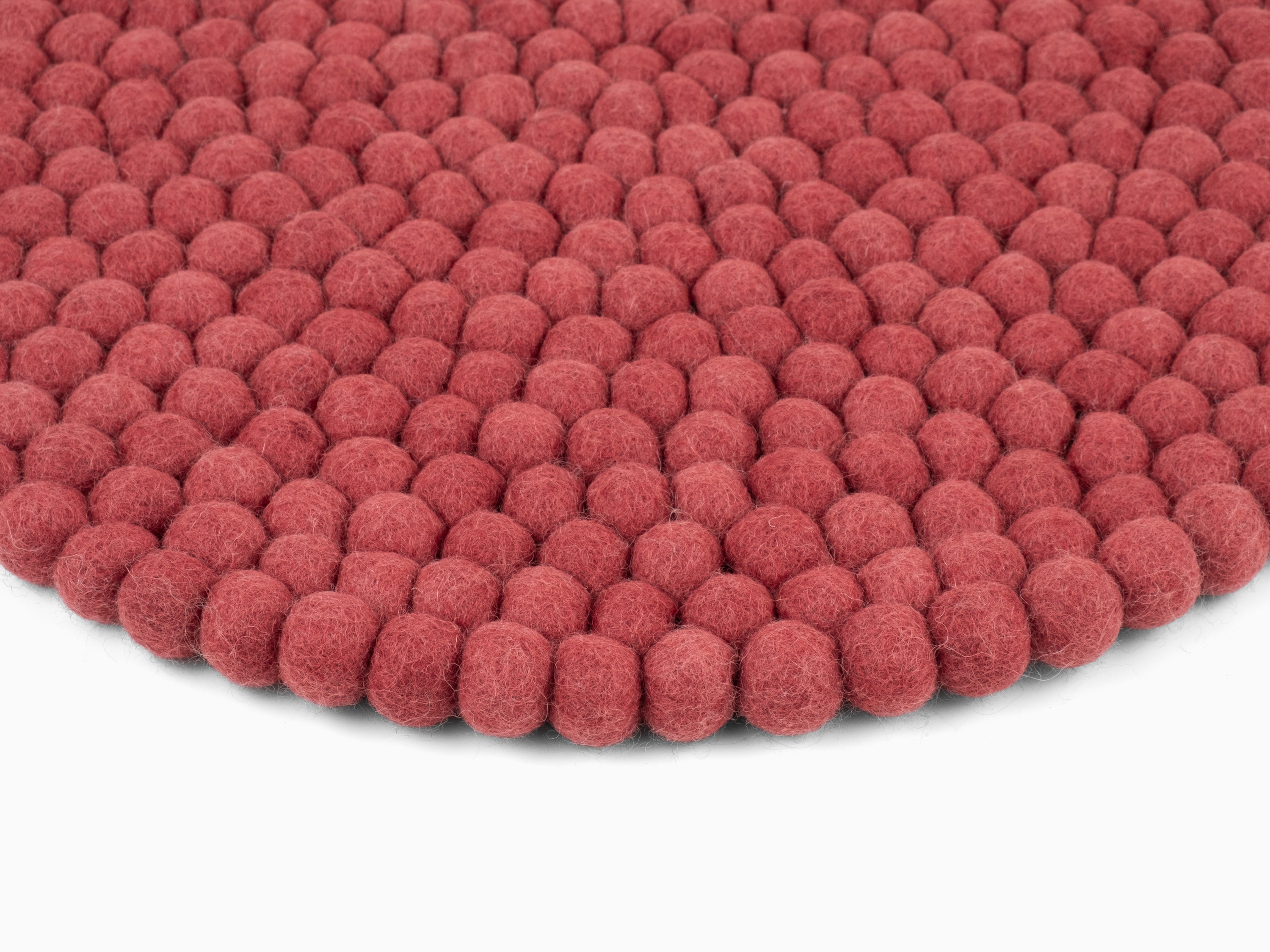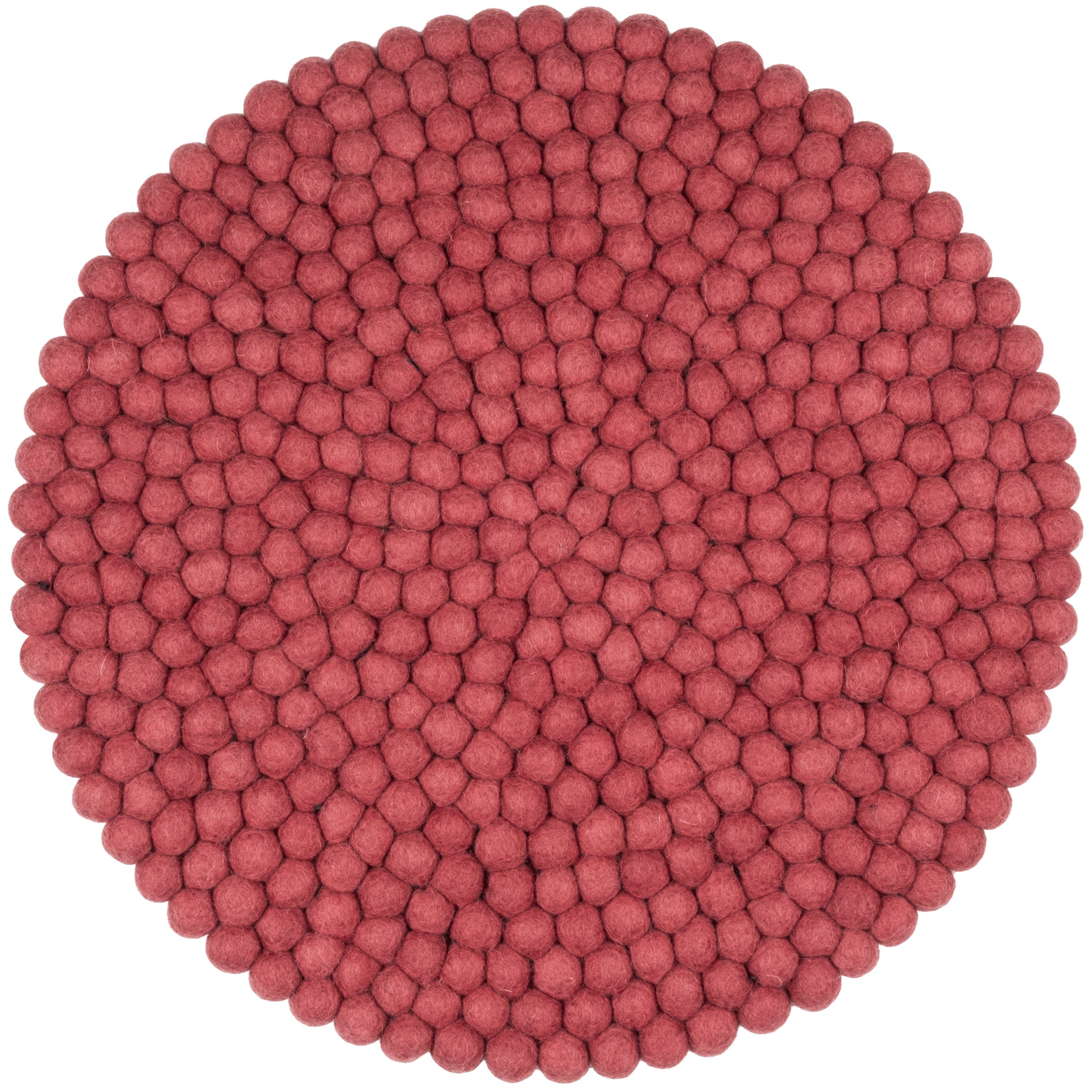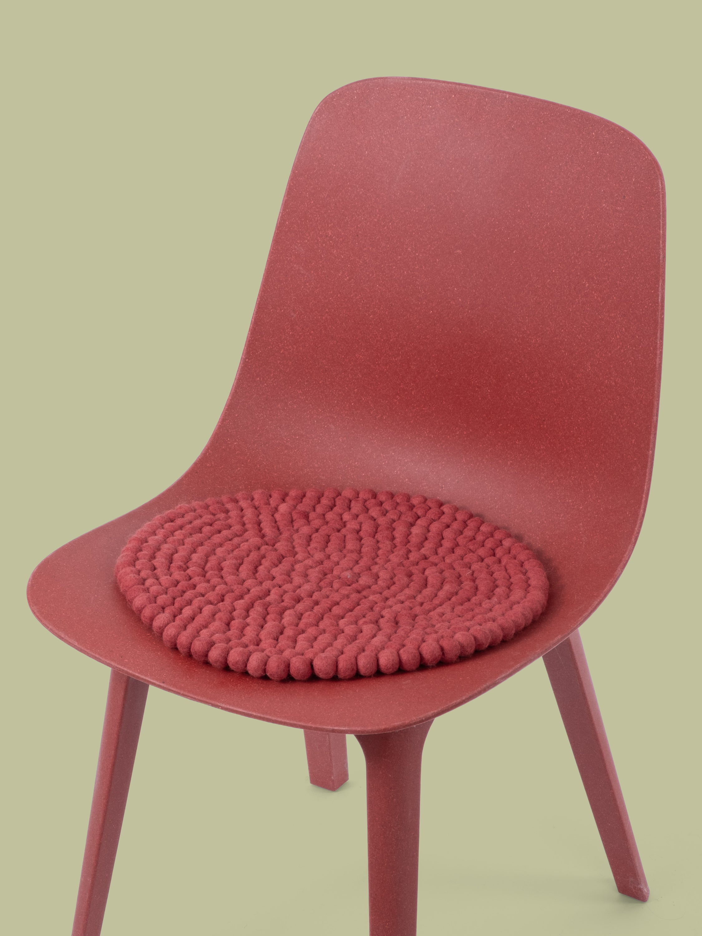 Round, wine red seat pad made of pure new wool.