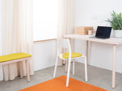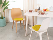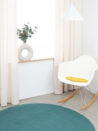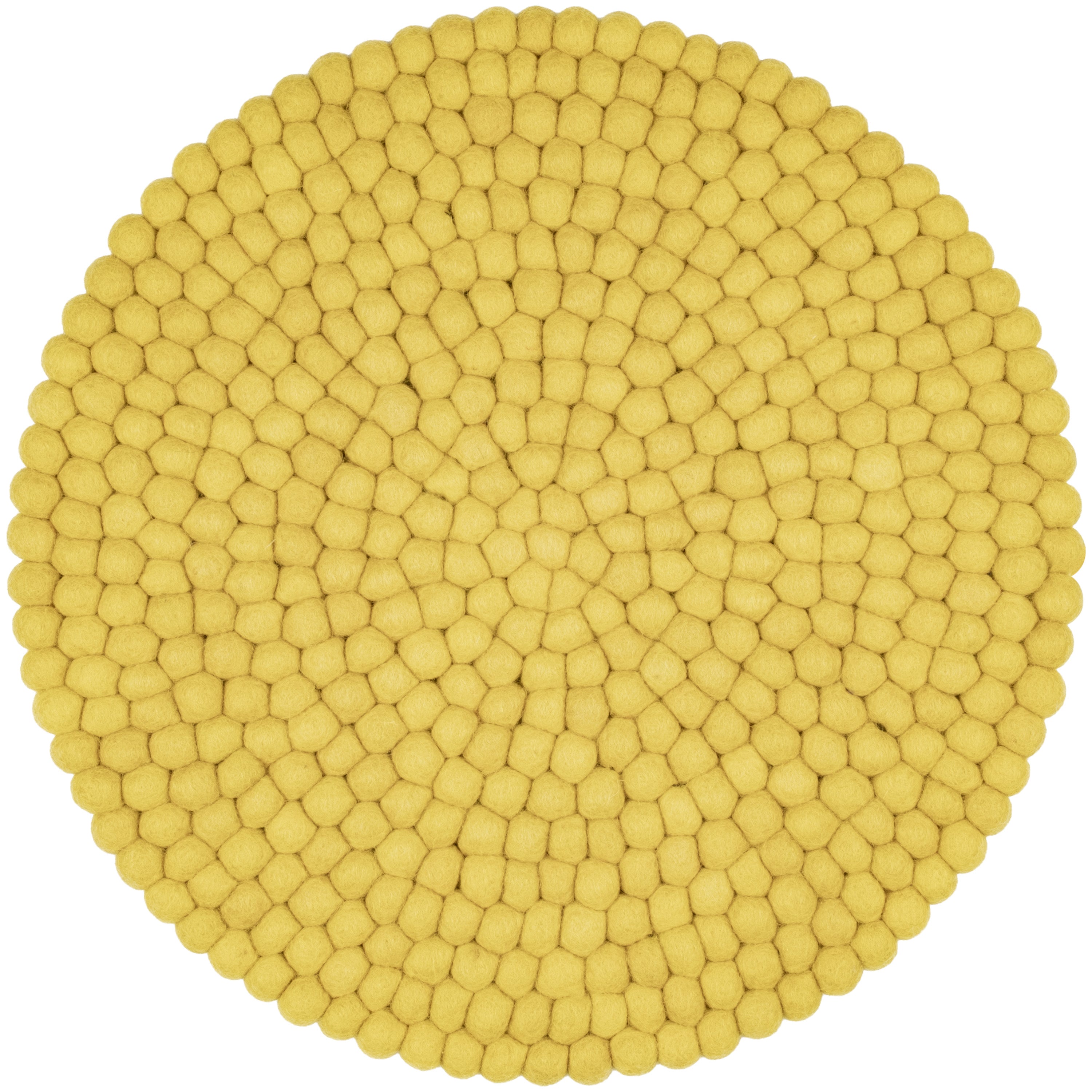The green-yellow seat pad Kata brings warmth and softness to your favorite chair. Made from pure new wool, handcrafted in Nepal and produced under fair conditions. myfelt seat pads are water- and dirt-repellent and can be used on both sides.