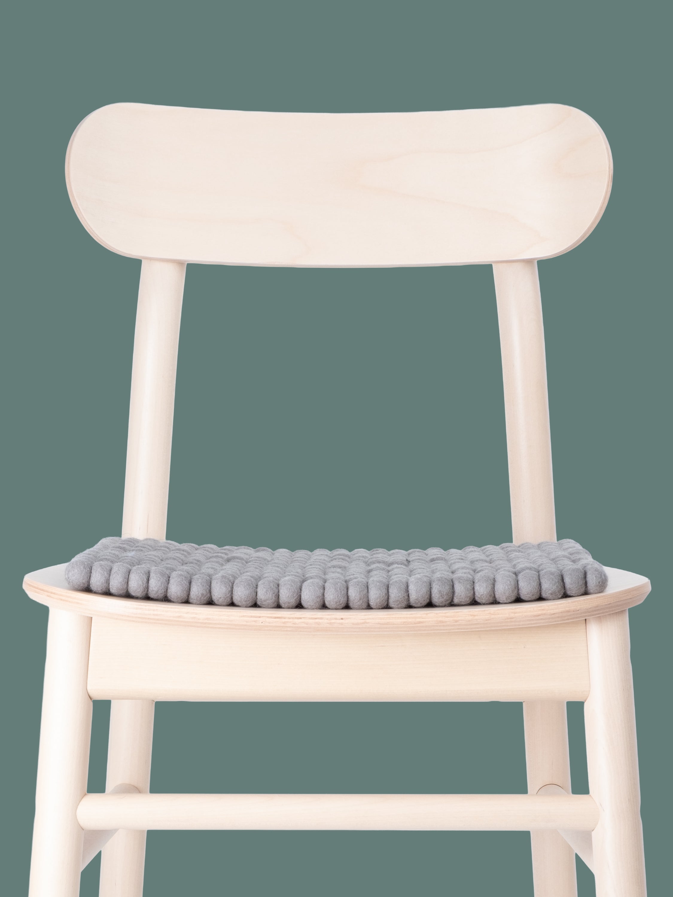 The gray seat pad Kian brings warmth and softness to your favorite chair. Made from pure new wool, handcrafted in Nepal and produced under fair conditions. myfelt seat pads are water- and dirt-repellent and can be used on both sides.