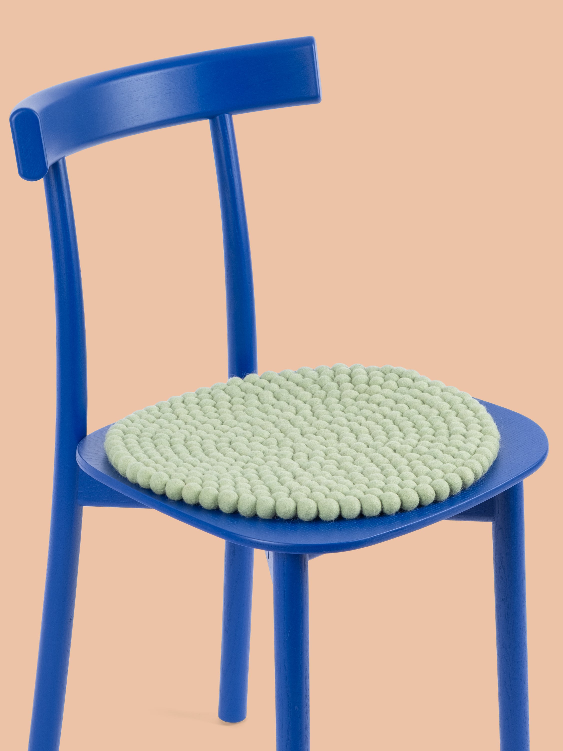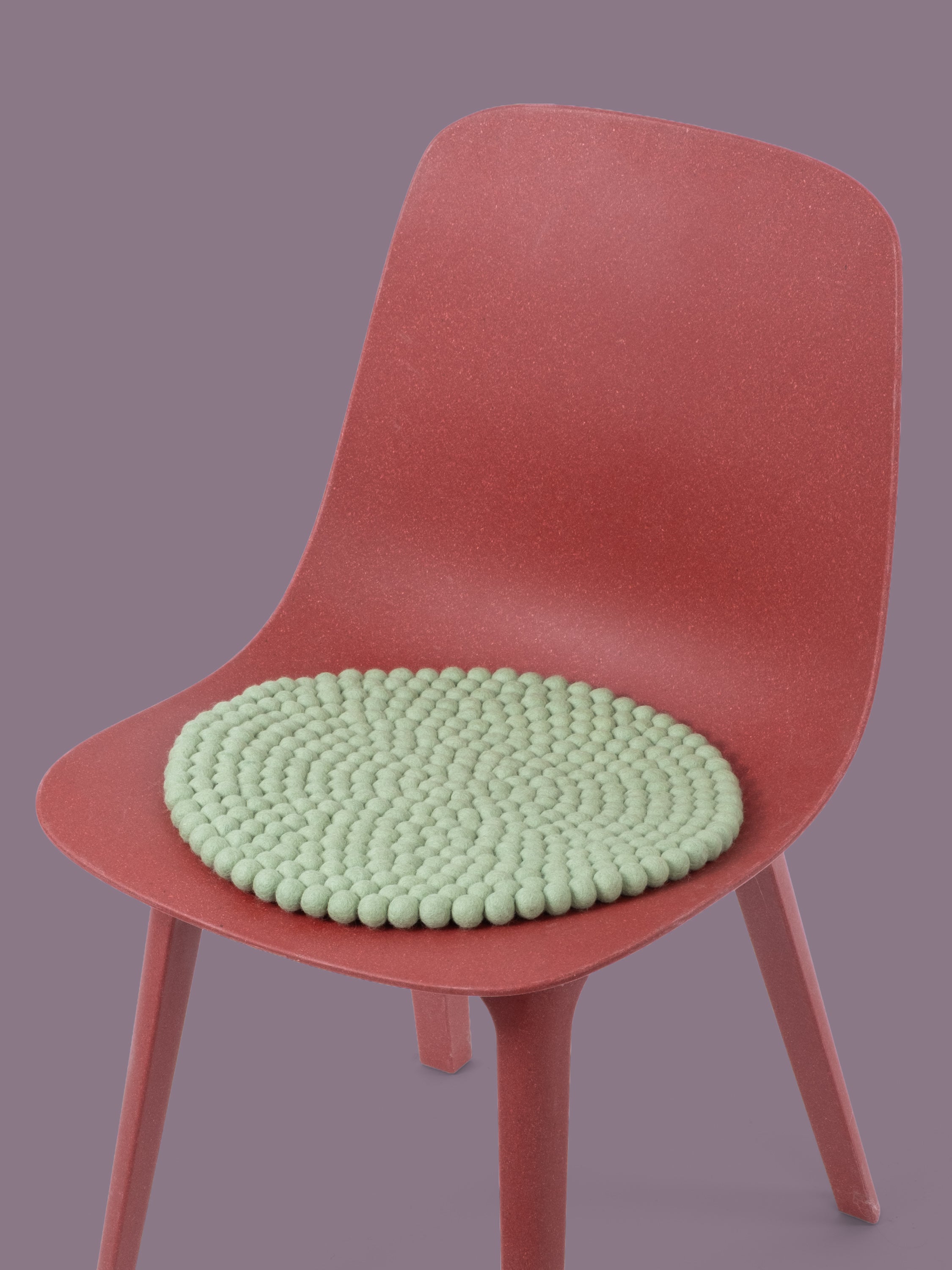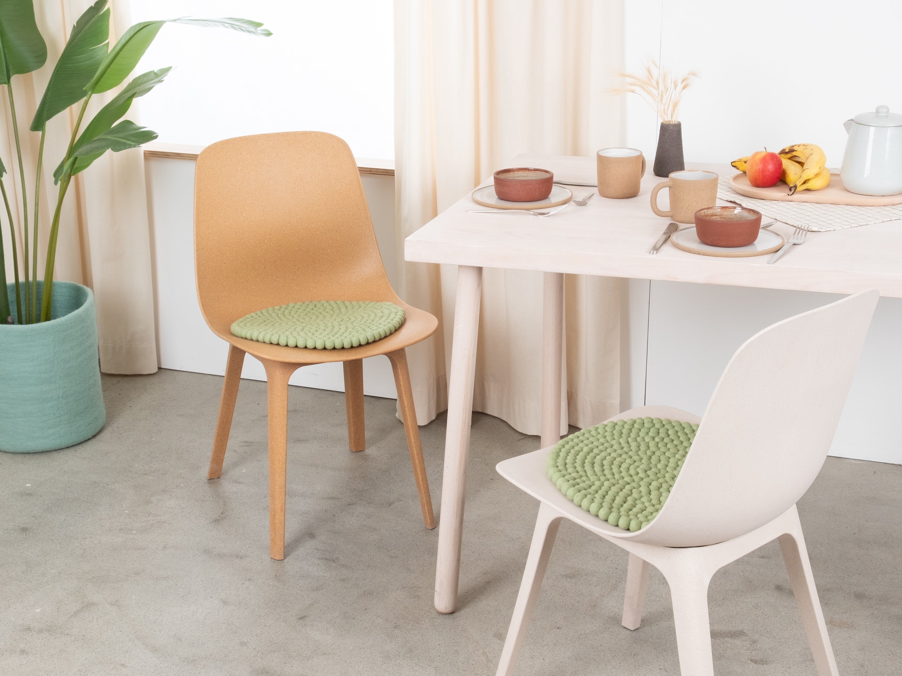 The light green seat pad Lasse brings warmth and softness to your favorite chair. Made from pure new wool, handcrafted in Nepal and produced under fair conditions. myfelt seat pads are water- and dirt-repellent and can be used on both sides.