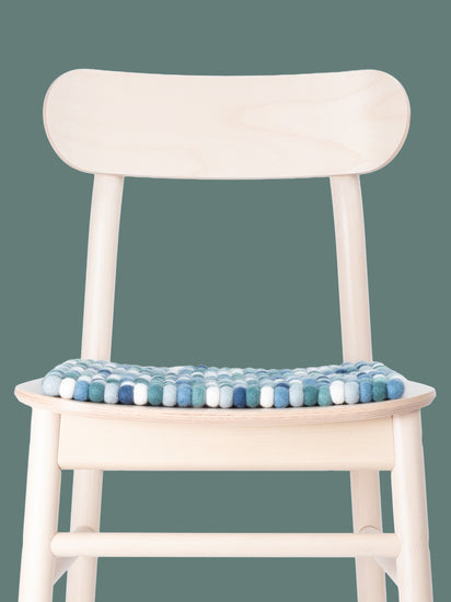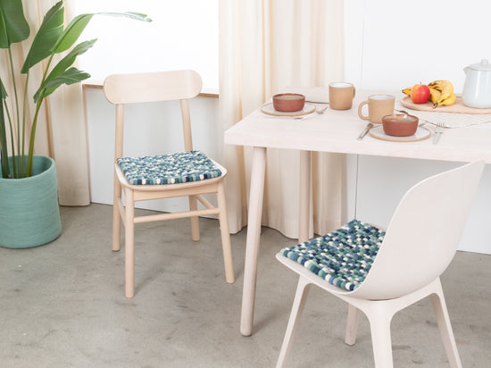 The multicolored seat pad Mare brings warmth and softness to your favorite chair. Made from pure new wool, handcrafted in Nepal and produced under fair conditions. myfelt seat pads are water- and dirt-repellent and can be used on both sides.
