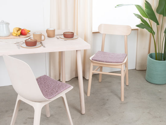 The light purple seat pad Marla brings warmth and softness to your favorite chair. Made from pure new wool, handcrafted in Nepal and produced under fair conditions. myfelt seat pads are water- and dirt-repellent and can be used on both sides.