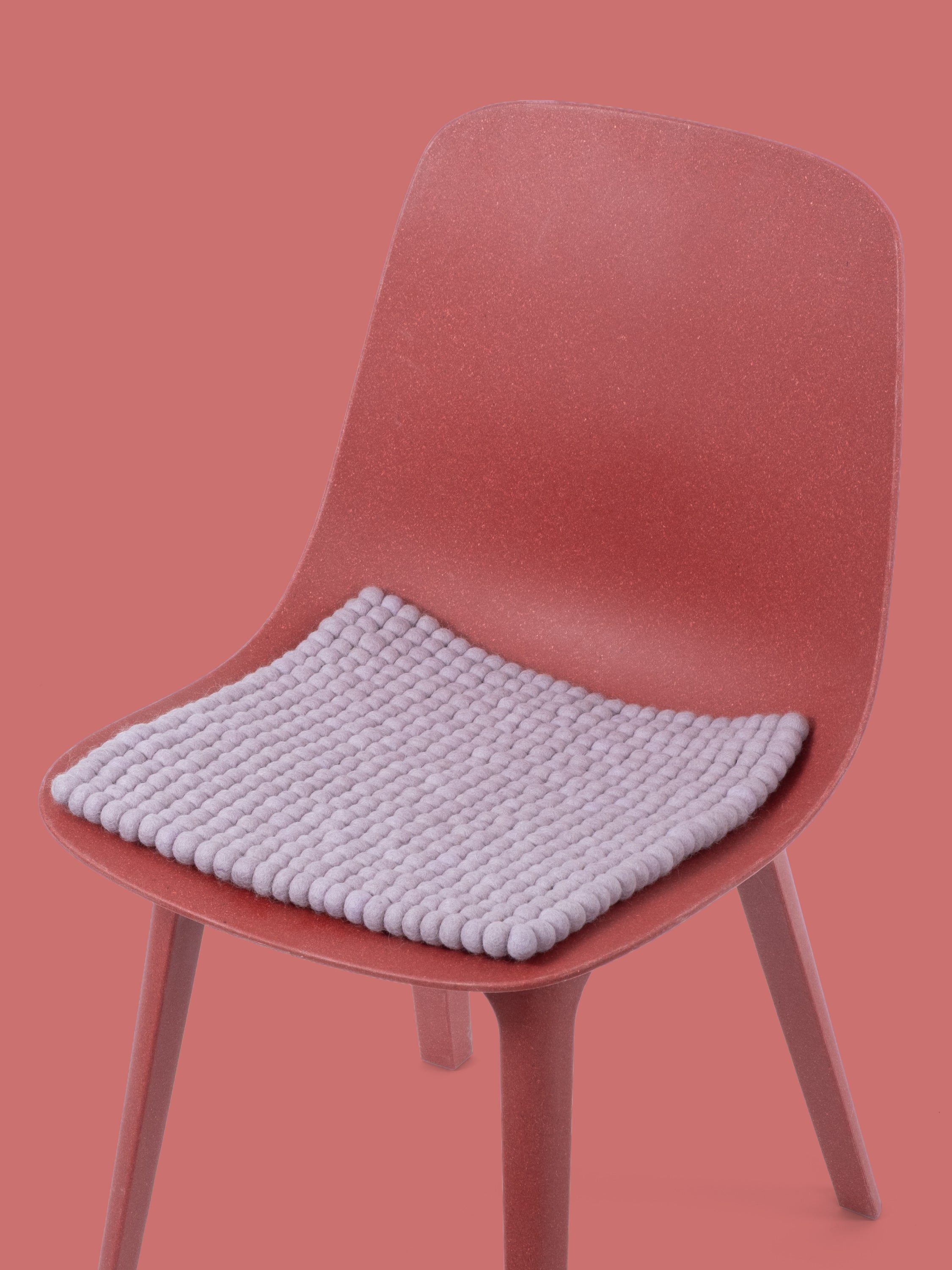 Square, light purple seat pad made of pure new wool.