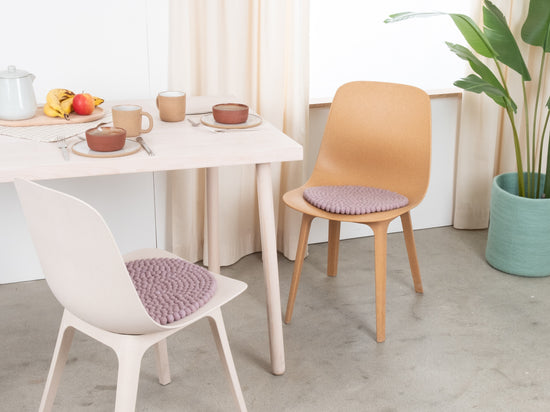 The light purple seat pad Marla brings warmth and softness to your favorite chair. Made from pure new wool, handcrafted in Nepal and produced under fair conditions. myfelt seat pads are water- and dirt-repellent and can be used on both sides.