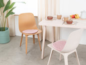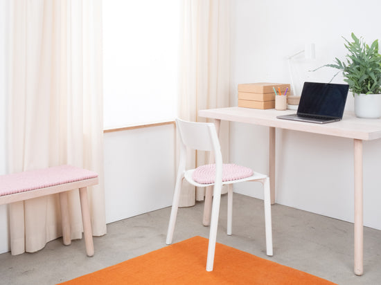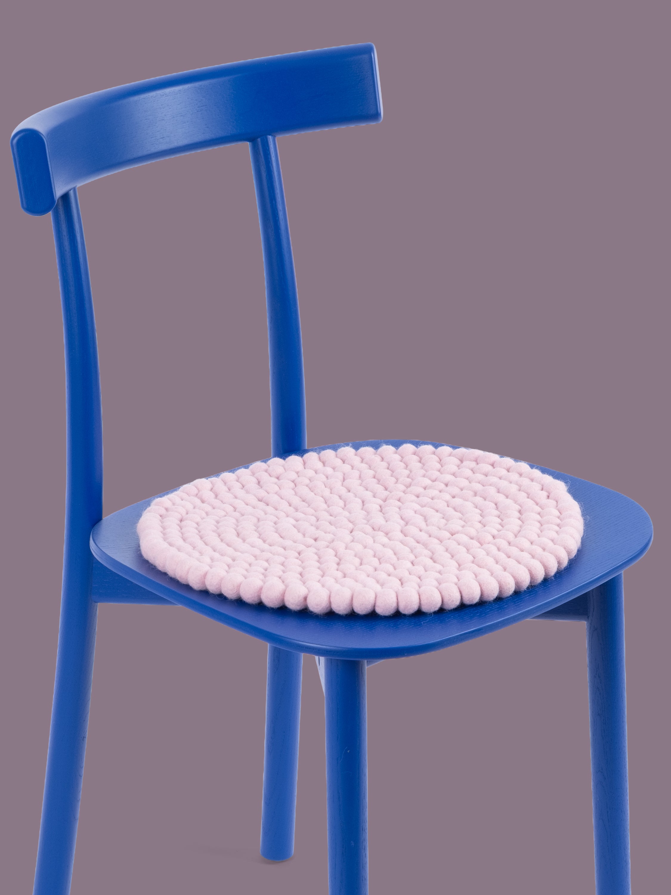 The soft pink seat pad Mona brings warmth and softness to your favorite chair. Made from pure new wool, handcrafted in Nepal and produced under fair conditions. myfelt seat pads are water- and dirt-repellent and can be used on both sides.