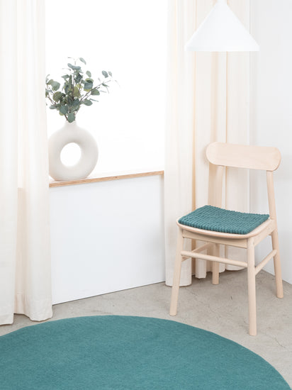 The petrol-colored seat pad Noah brings warmth and softness to your favorite chair. Made from pure new wool, handcrafted in Nepal and produced under fair conditions. myfelt seat pads are water- and dirt-repellent and can be used on both sides.