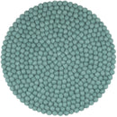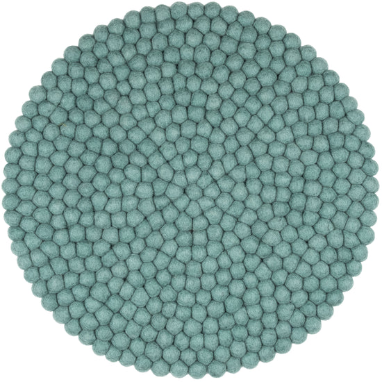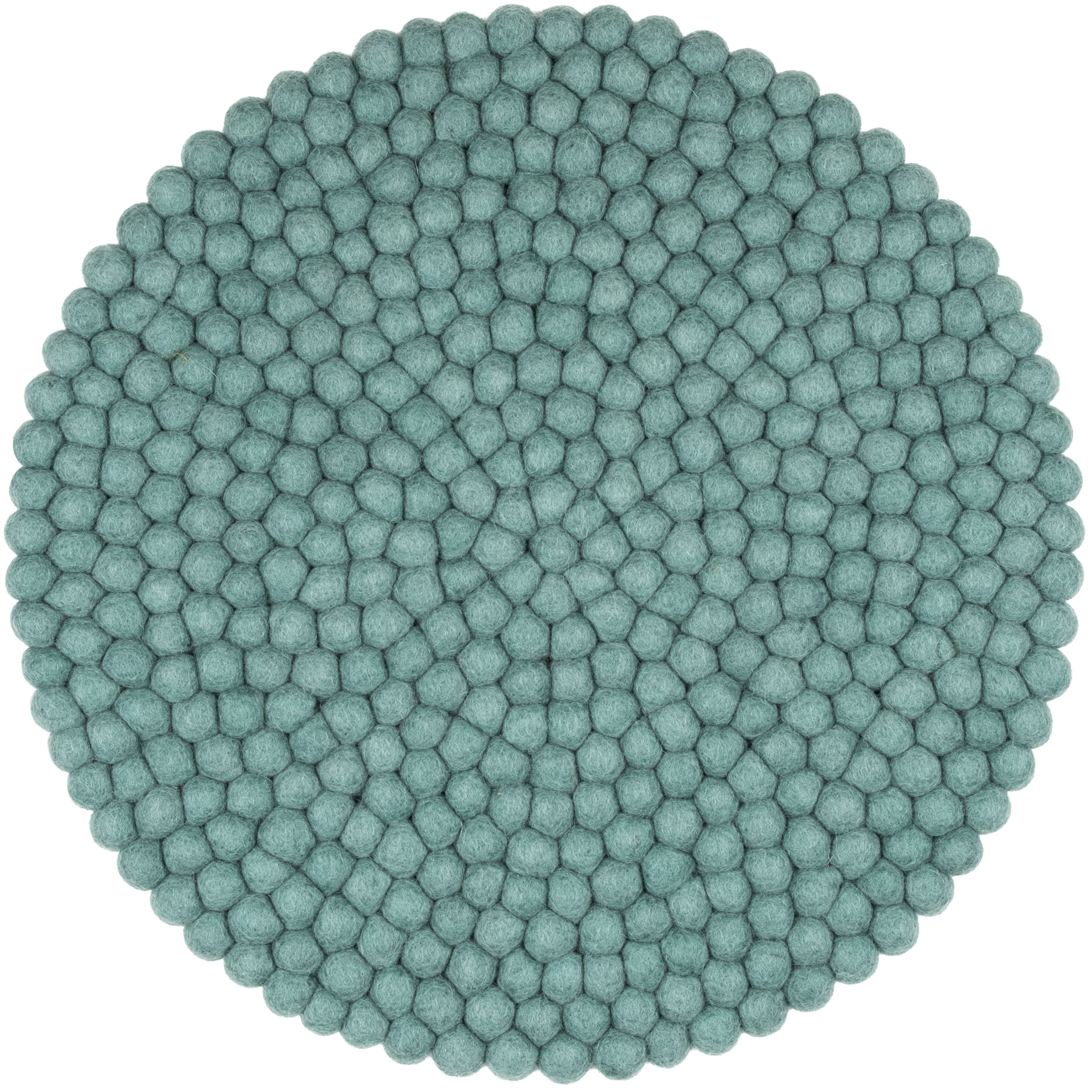 Round, aqua-colored seat pad made of pure new wool.