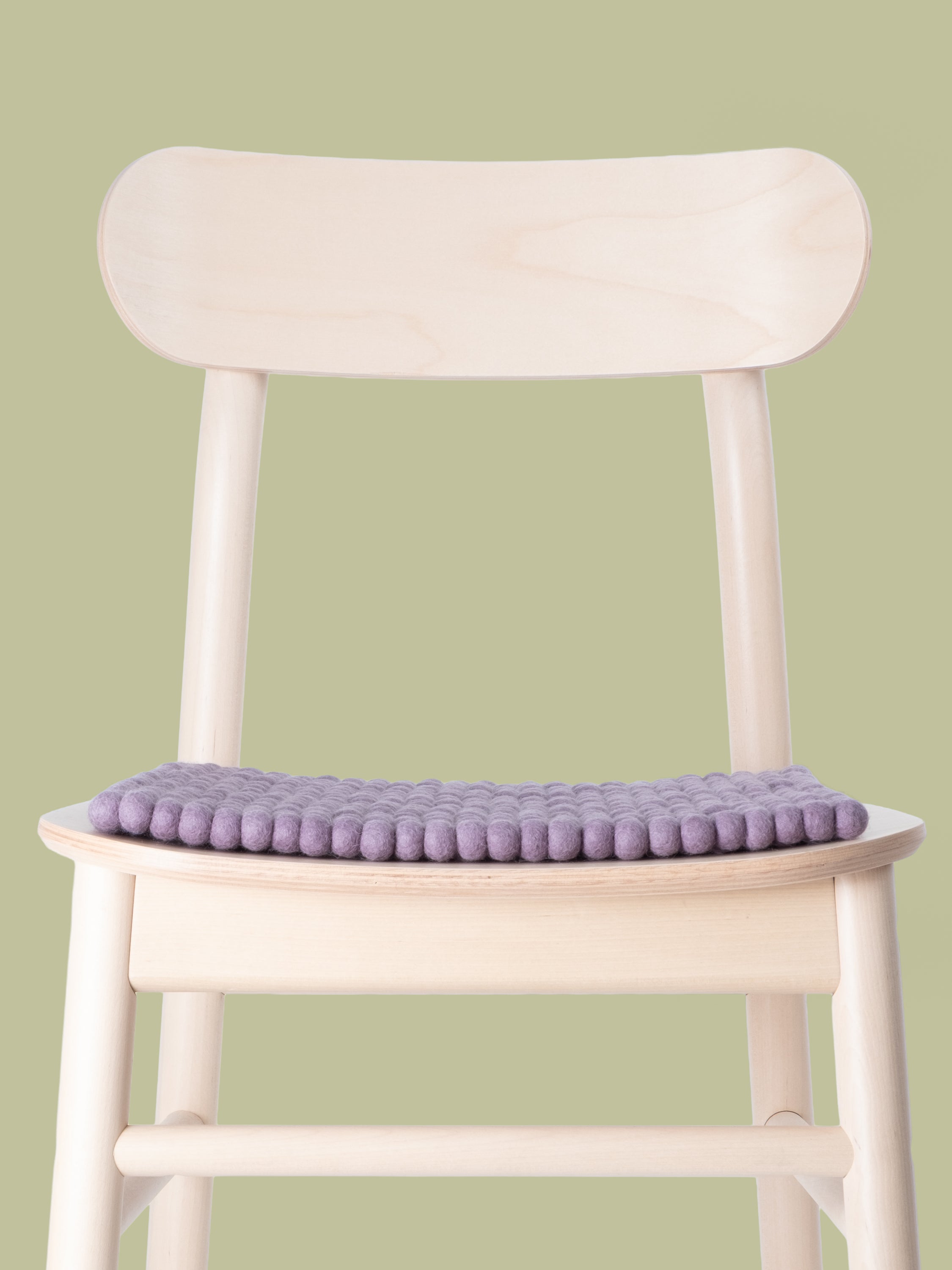 Square, lilac-gray seat pad made of pure new wool.