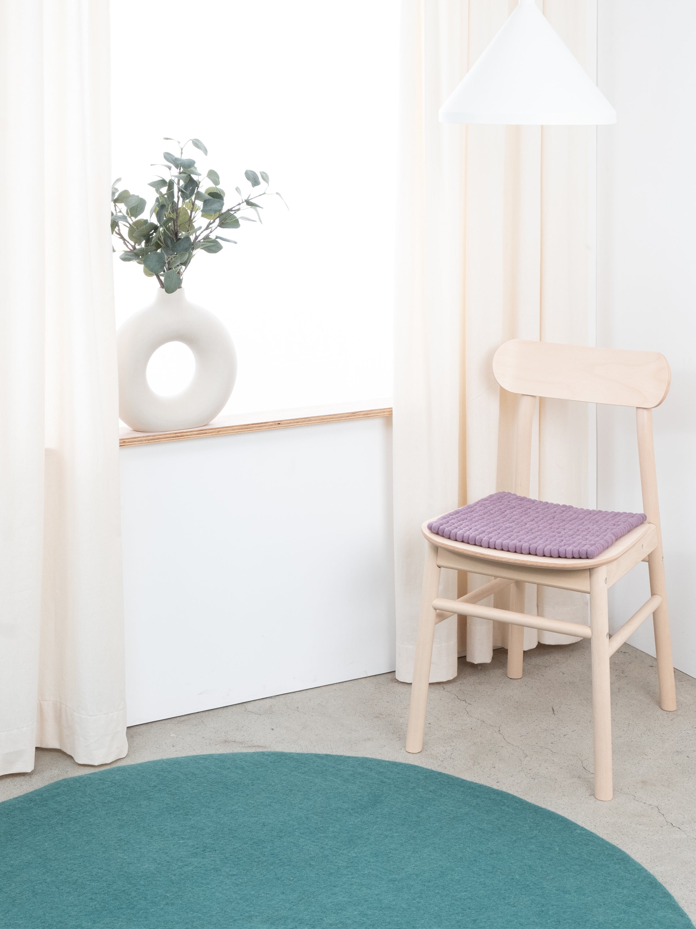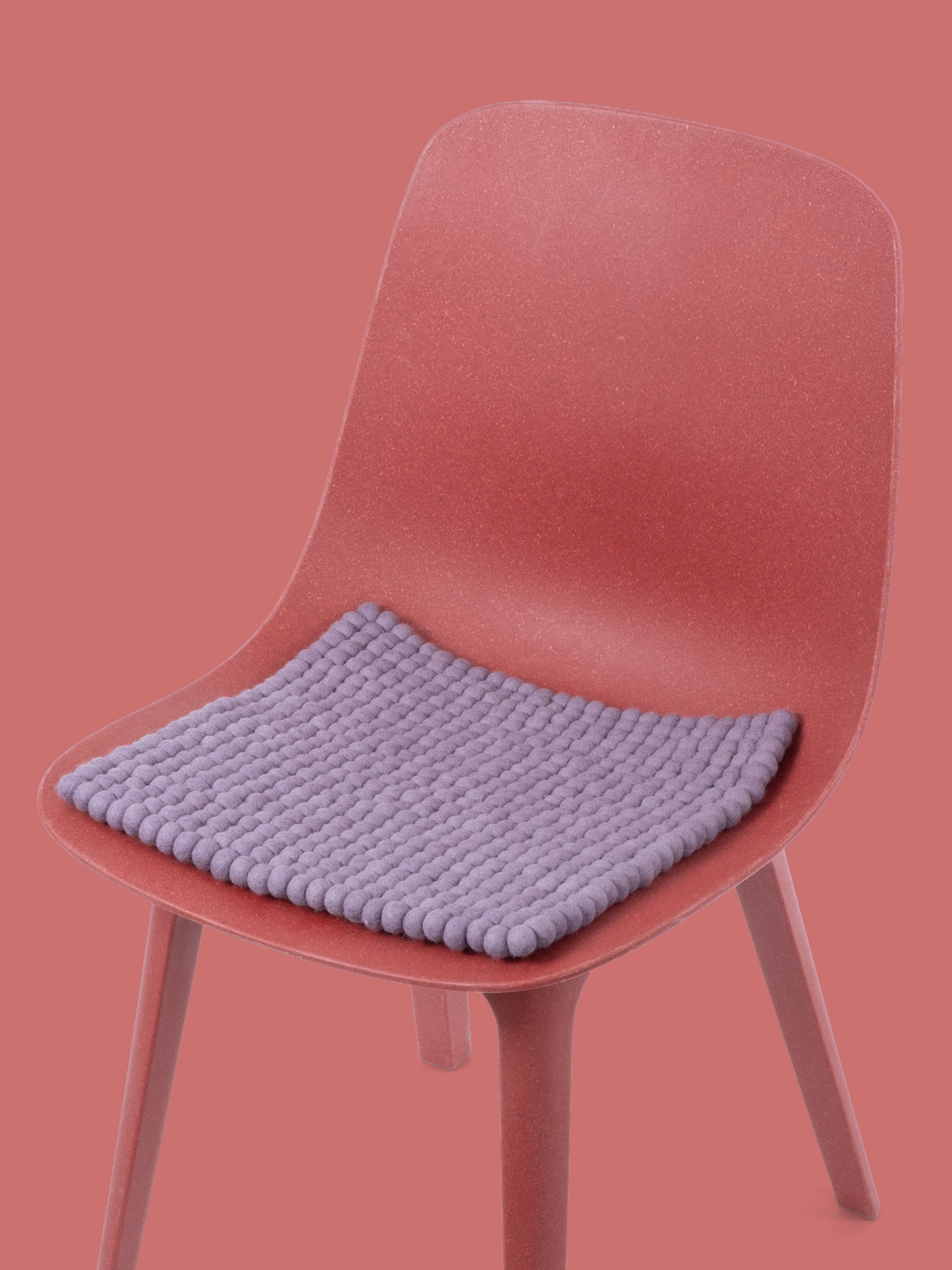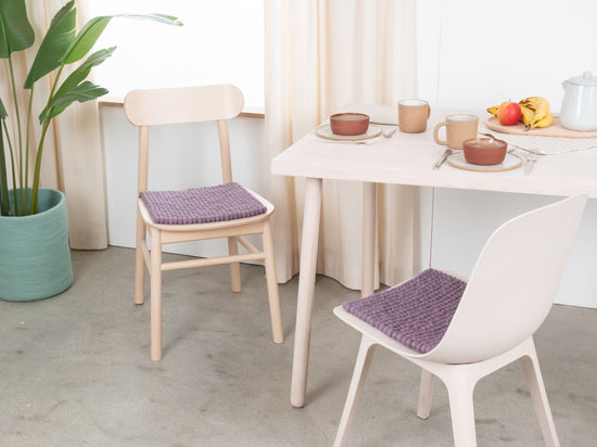 The lilac-gray seat pad Tove brings warmth and softness to your favorite chair. Made from pure new wool, handcrafted in Nepal and produced under fair conditions. myfelt seat pads are water- and dirt-repellent and can be used on both sides.