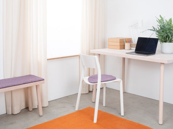 The lilac-gray seat pad Tove brings warmth and softness to your favorite chair. Made from pure new wool, handcrafted in Nepal and produced under fair conditions. myfelt seat pads are water- and dirt-repellent and can be used on both sides.