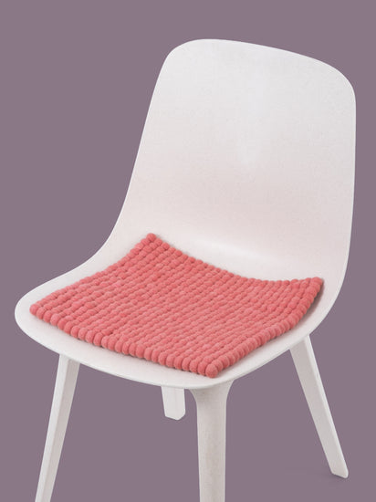 The coral pink seat pad Vera brings warmth and softness to your favorite chair. Made from pure new wool, handcrafted in Nepal and produced under fair conditions. myfelt seat pads are water- and dirt-repellent and can be used on both sides.