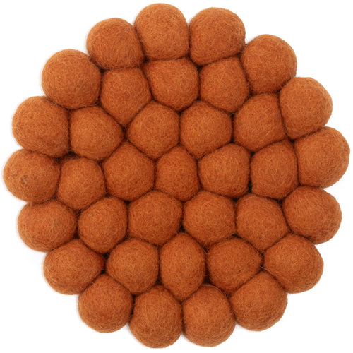 Round, felt ball rug made out of pure new wool.