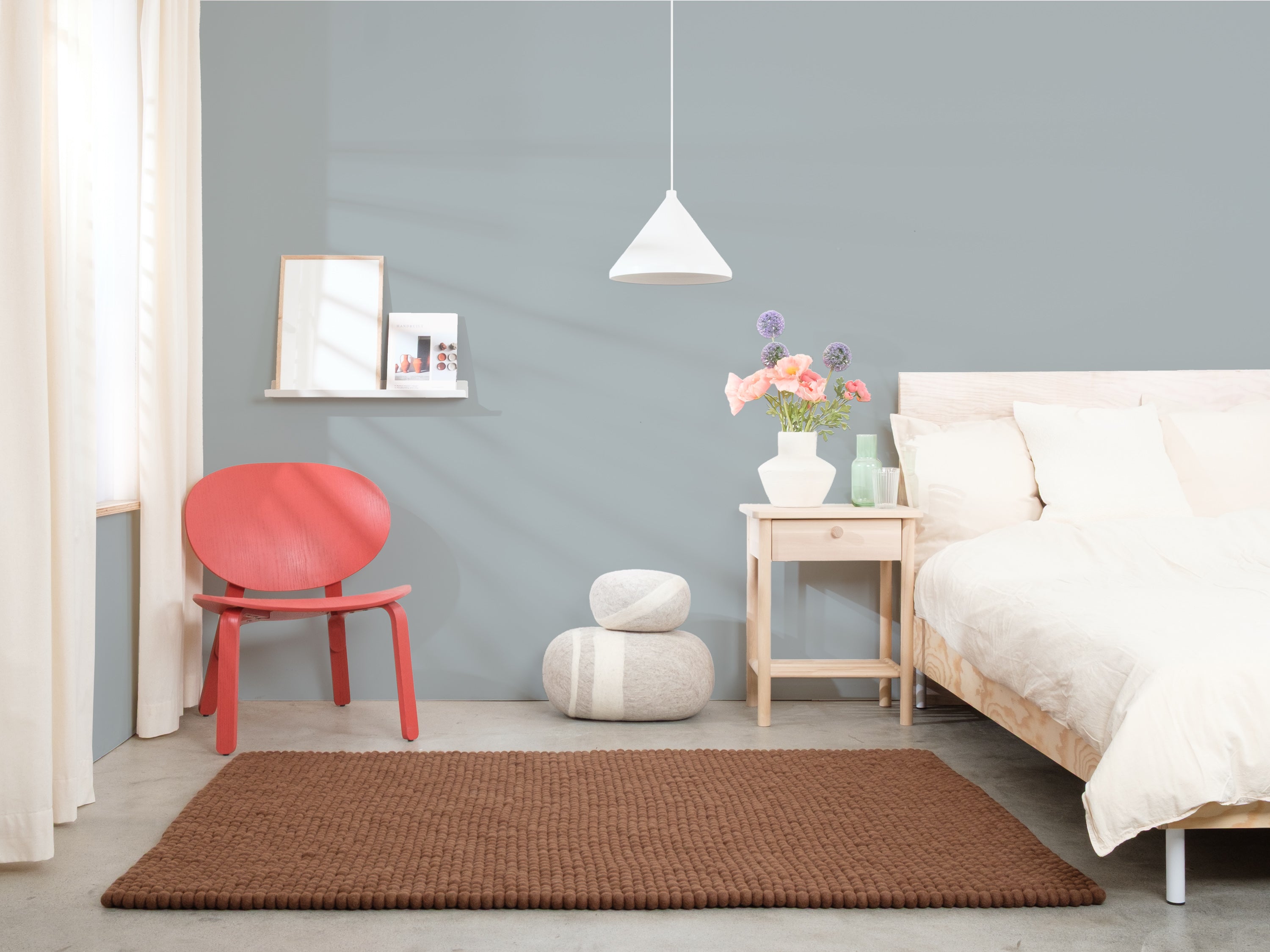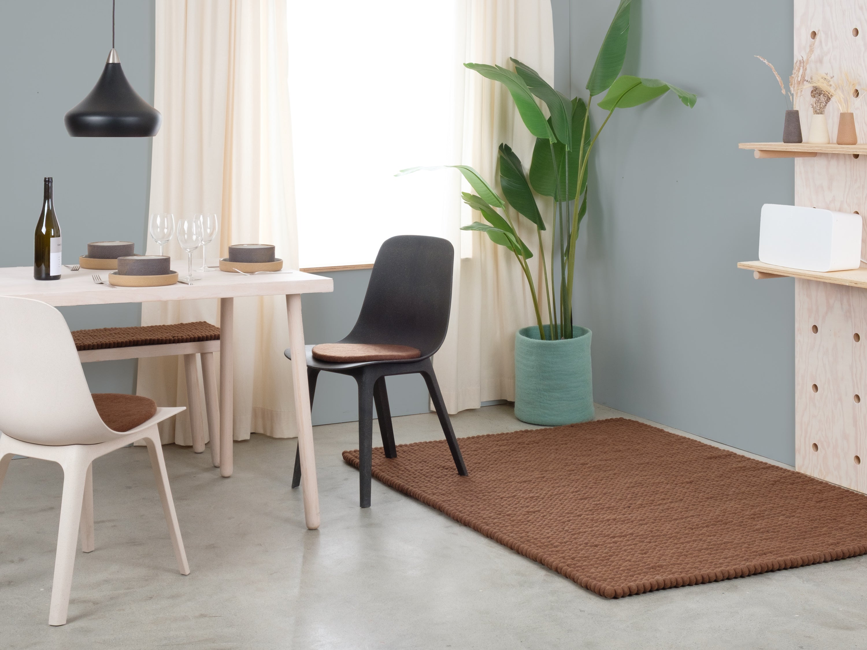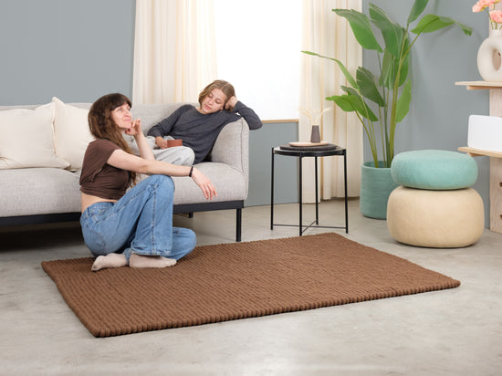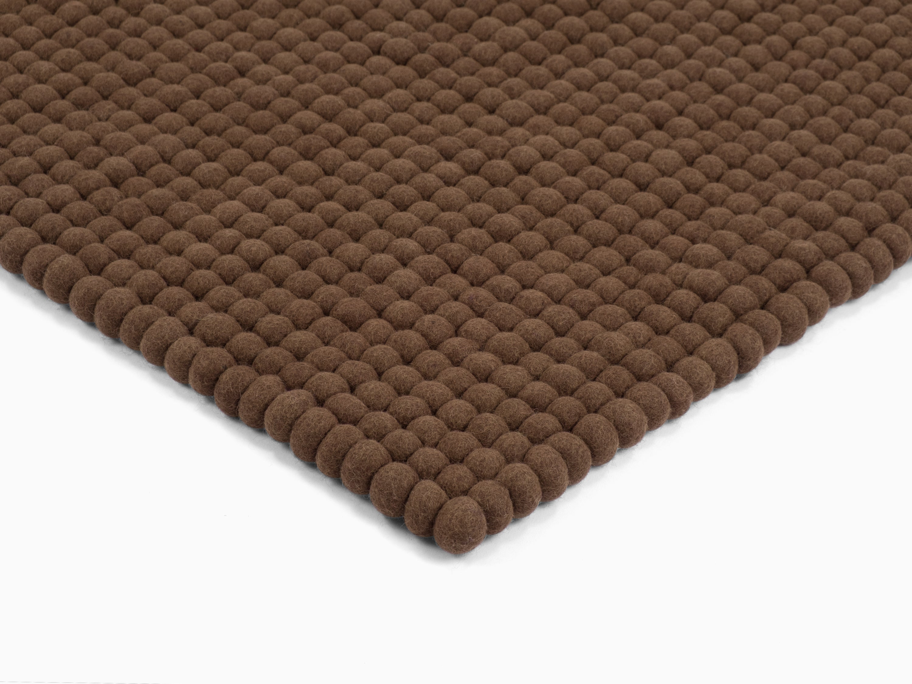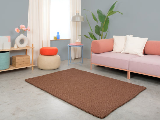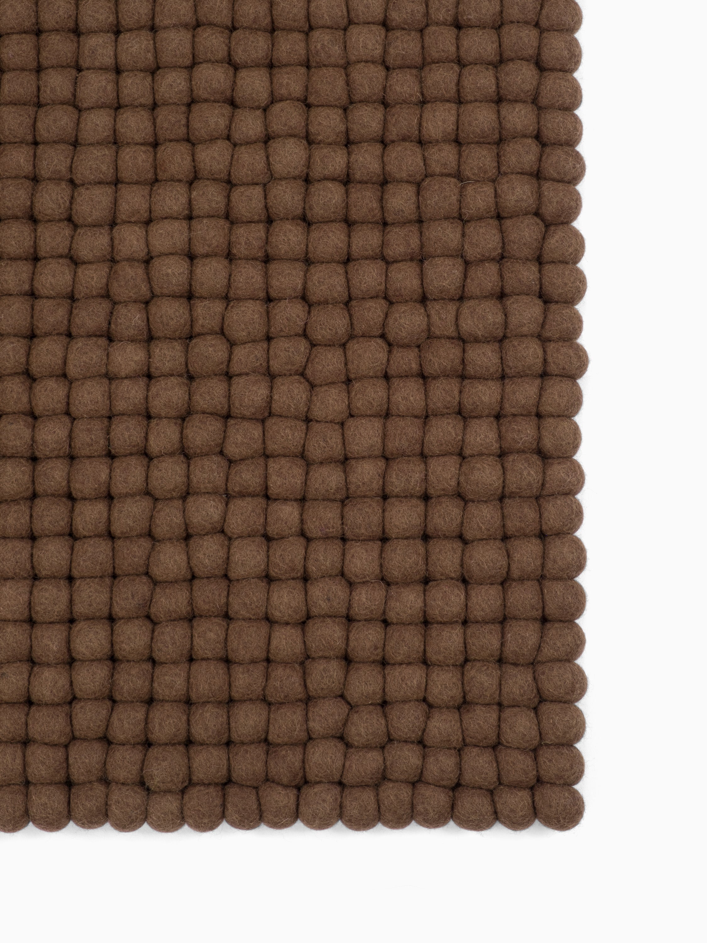 Egon comes in warm chocolate brown. This felt ball rug grounds any room, adding cosiness and structure. Ideal for reading corners and living areas that welcome warmth. Hard-wearing, keeps its shape and comfortable underfoot. Handcrafted in Nepal—100% pure new wool.