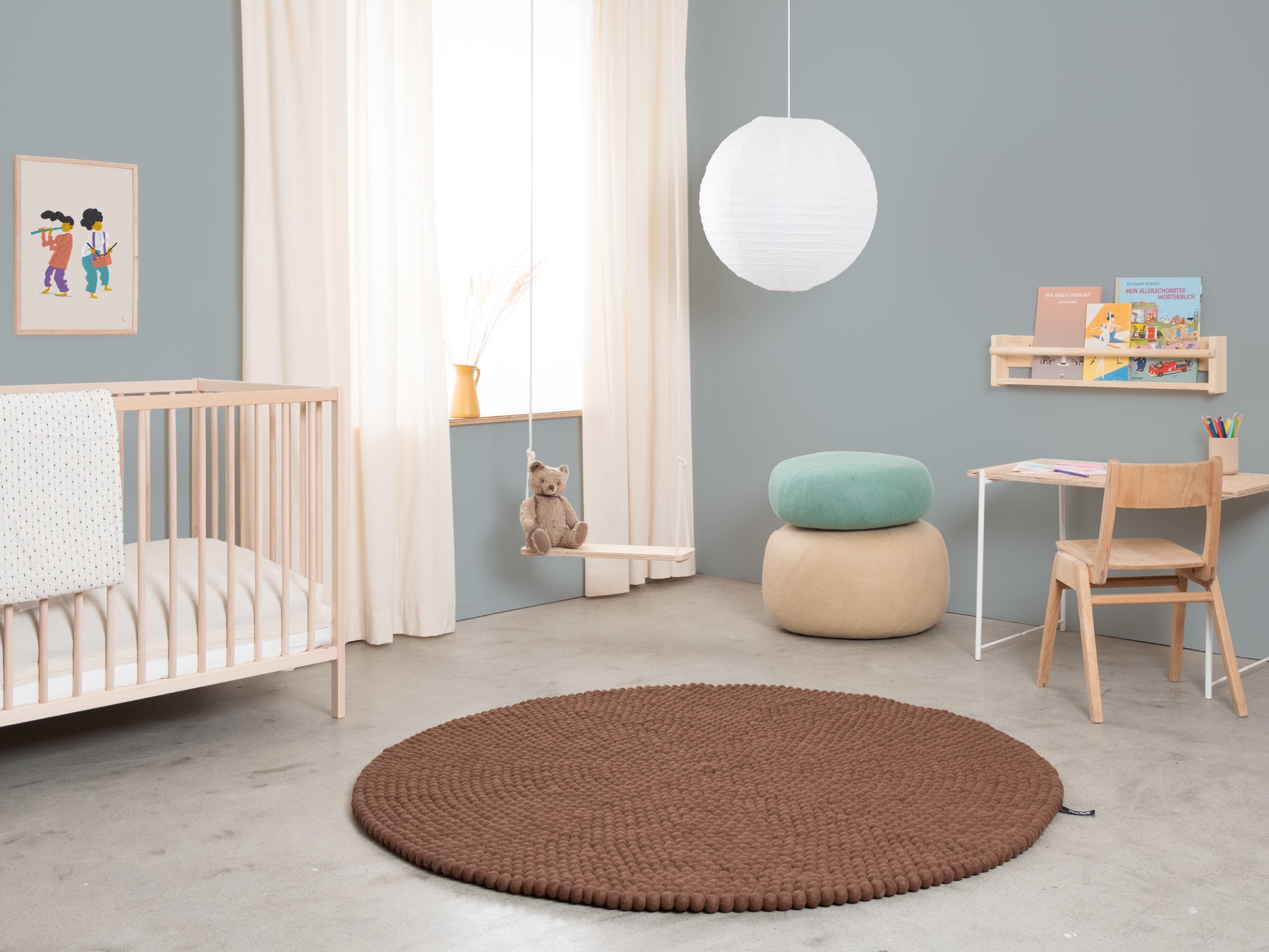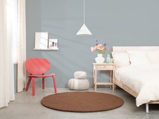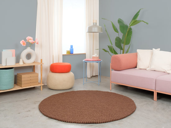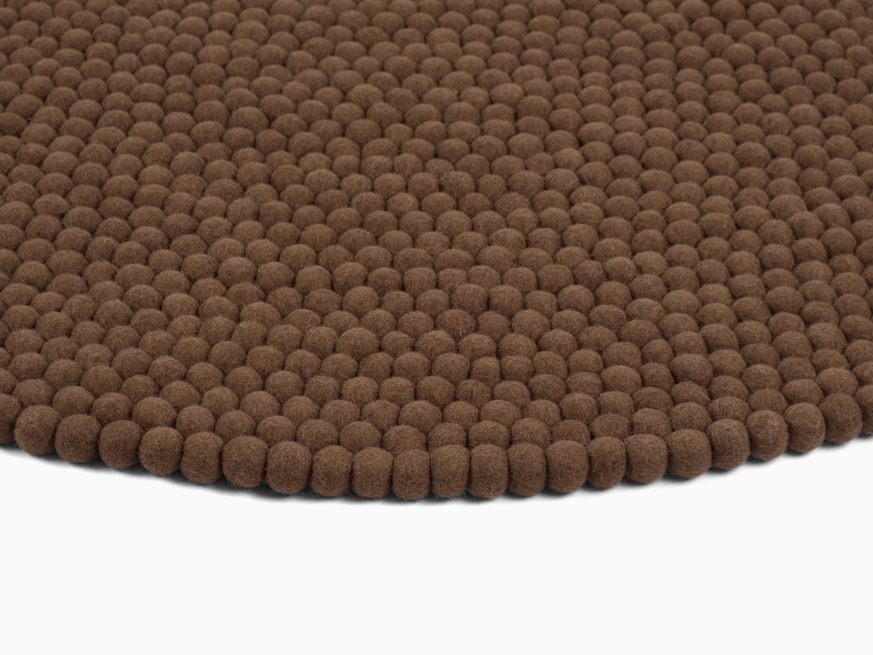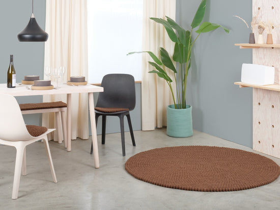 Egon comes in warm chocolate brown. This felt ball rug grounds any room, adding cosiness and structure. Ideal for reading corners and living areas that welcome warmth. Hard-wearing, keeps its shape and comfortable underfoot. Handcrafted in Nepal—100% pure new wool.
