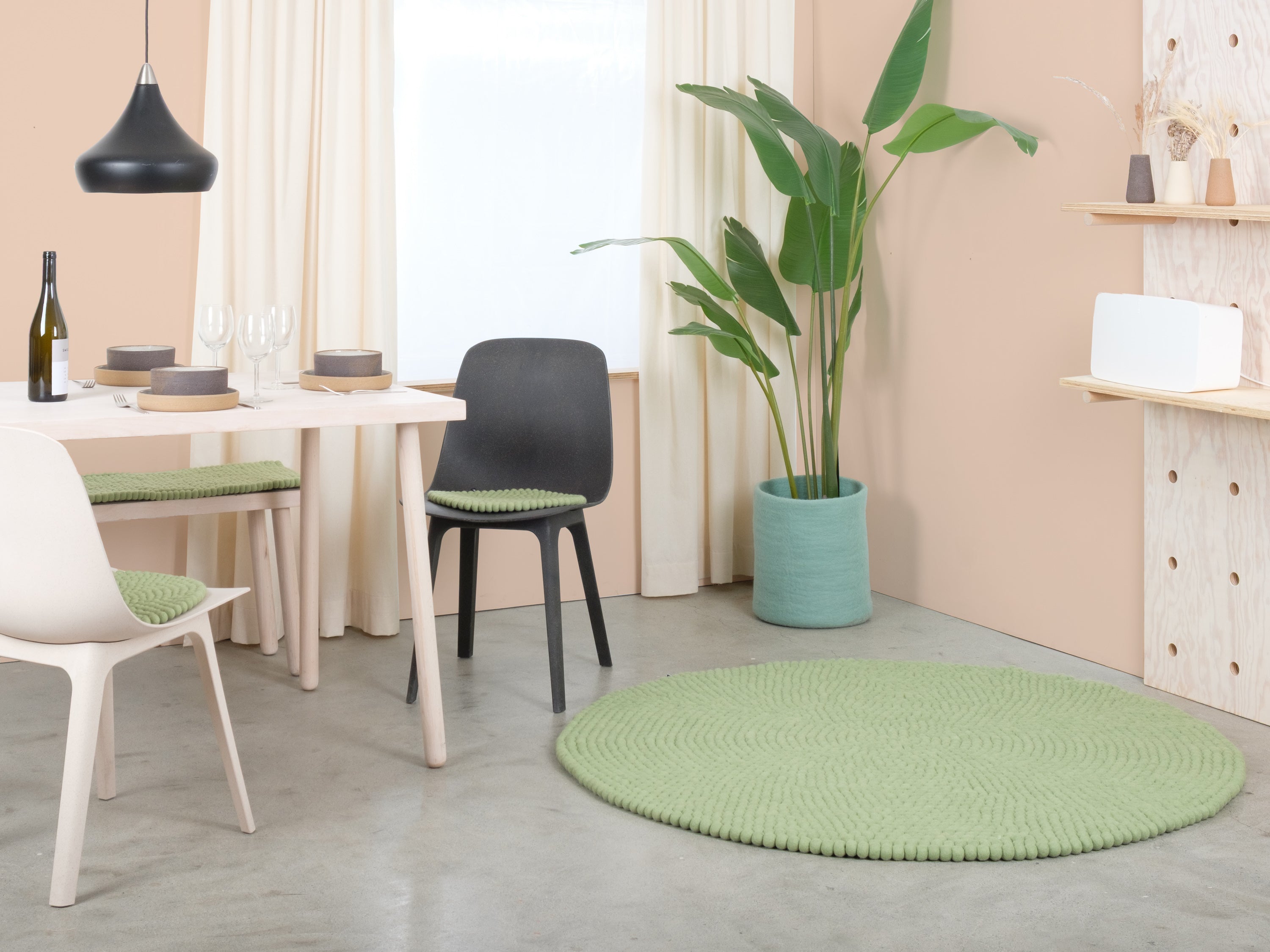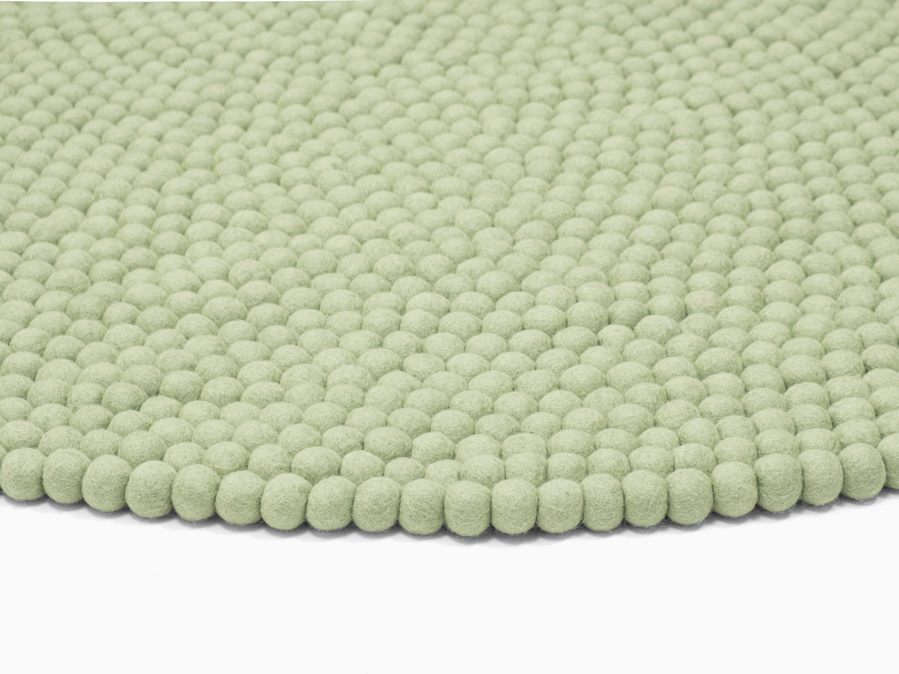 Lasse is a felt ball rug in a gentle sage green. It brings calm and lightness to any room and pairs beautifully with wood, white and natural tones. Soft underfoot, everyday-robust and naturally dirt-repellent. Handcrafted in Nepal from 100% pure new wool.