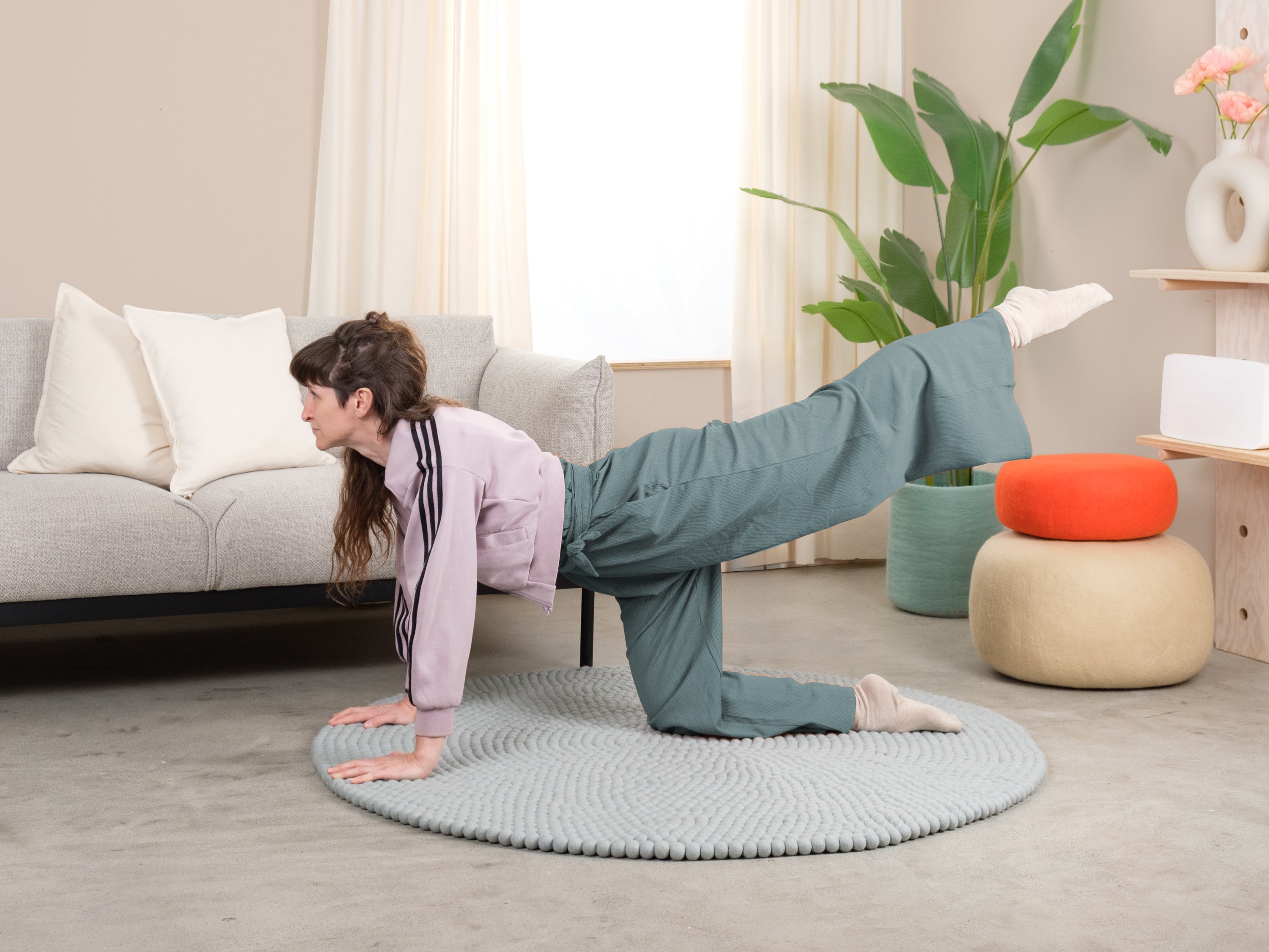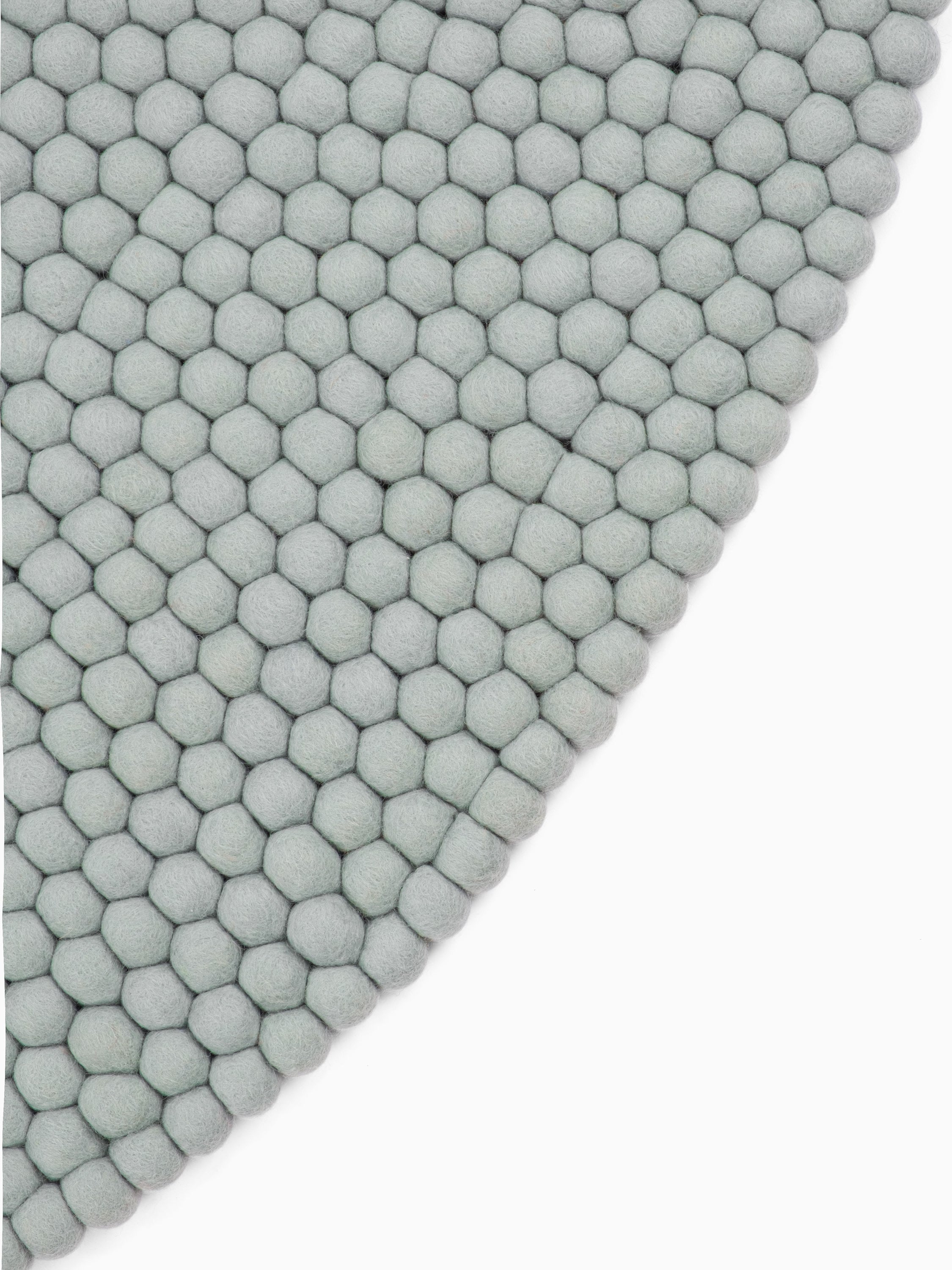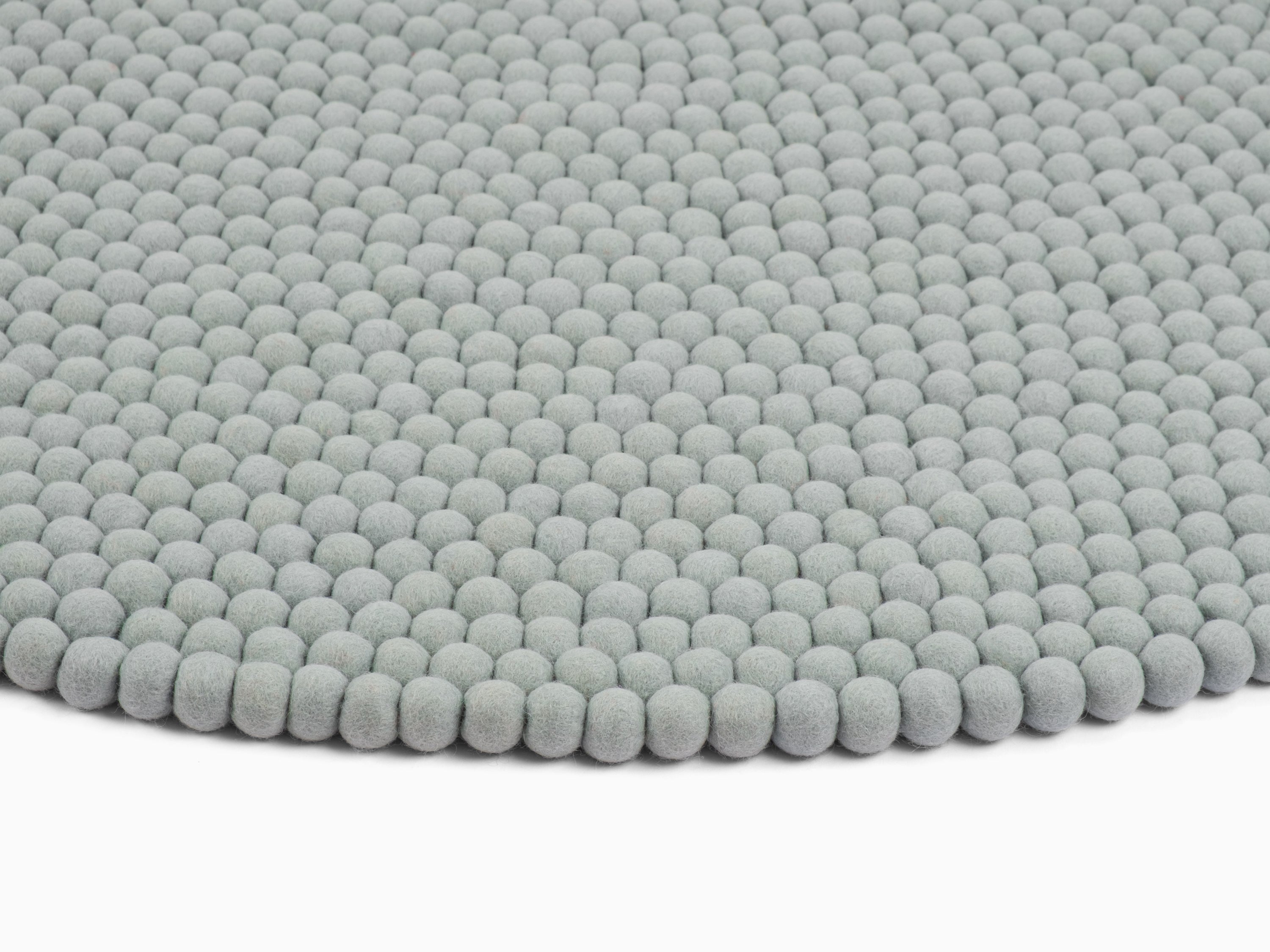 Round, felt ball rug made out of pure new wool.