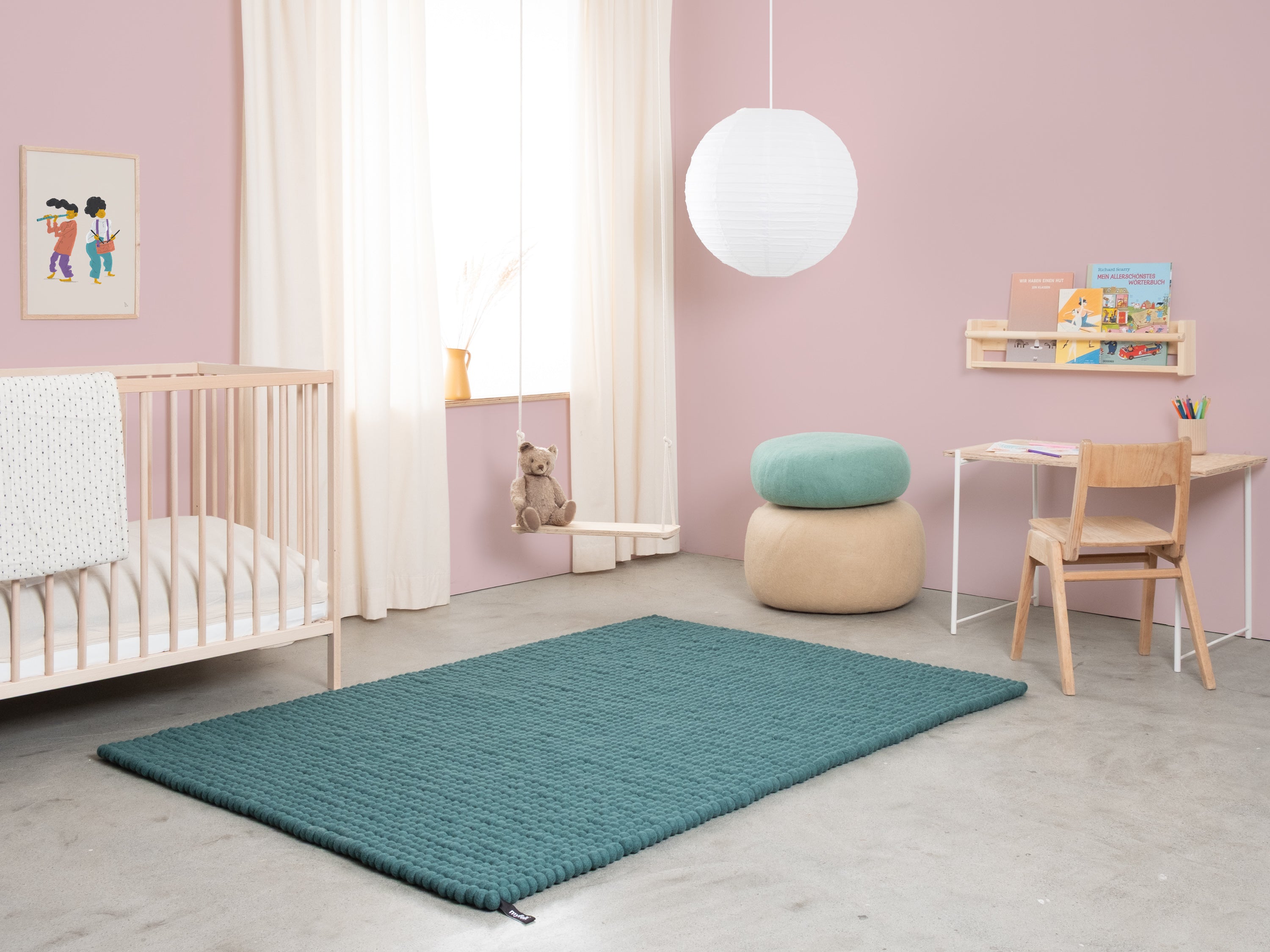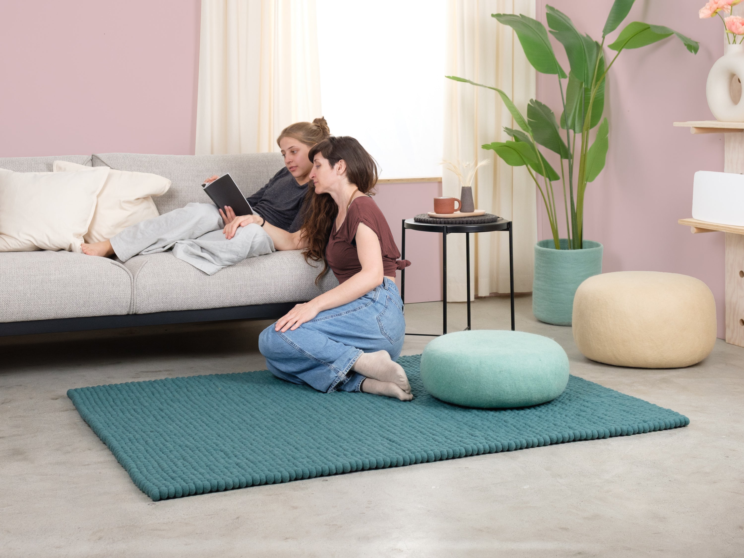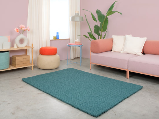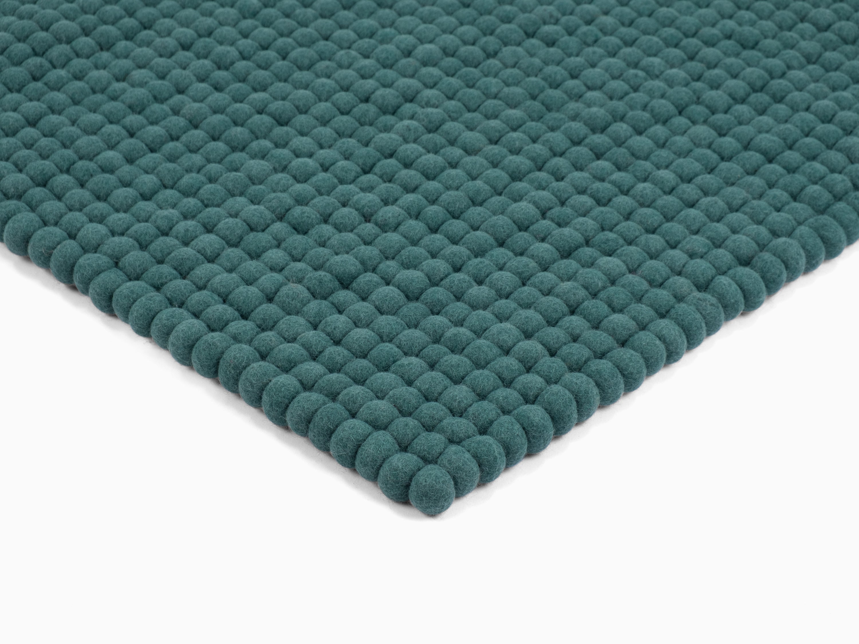 Noah is a felt ball rug in deep petrol. Powerful, clear and still relaxing—use as a statement piece or a quiet base. Works with light wood, concrete and neutral colours. Noticeably soft, durable and easy to care for. Handcrafted in Nepal from 100% pure new wool.