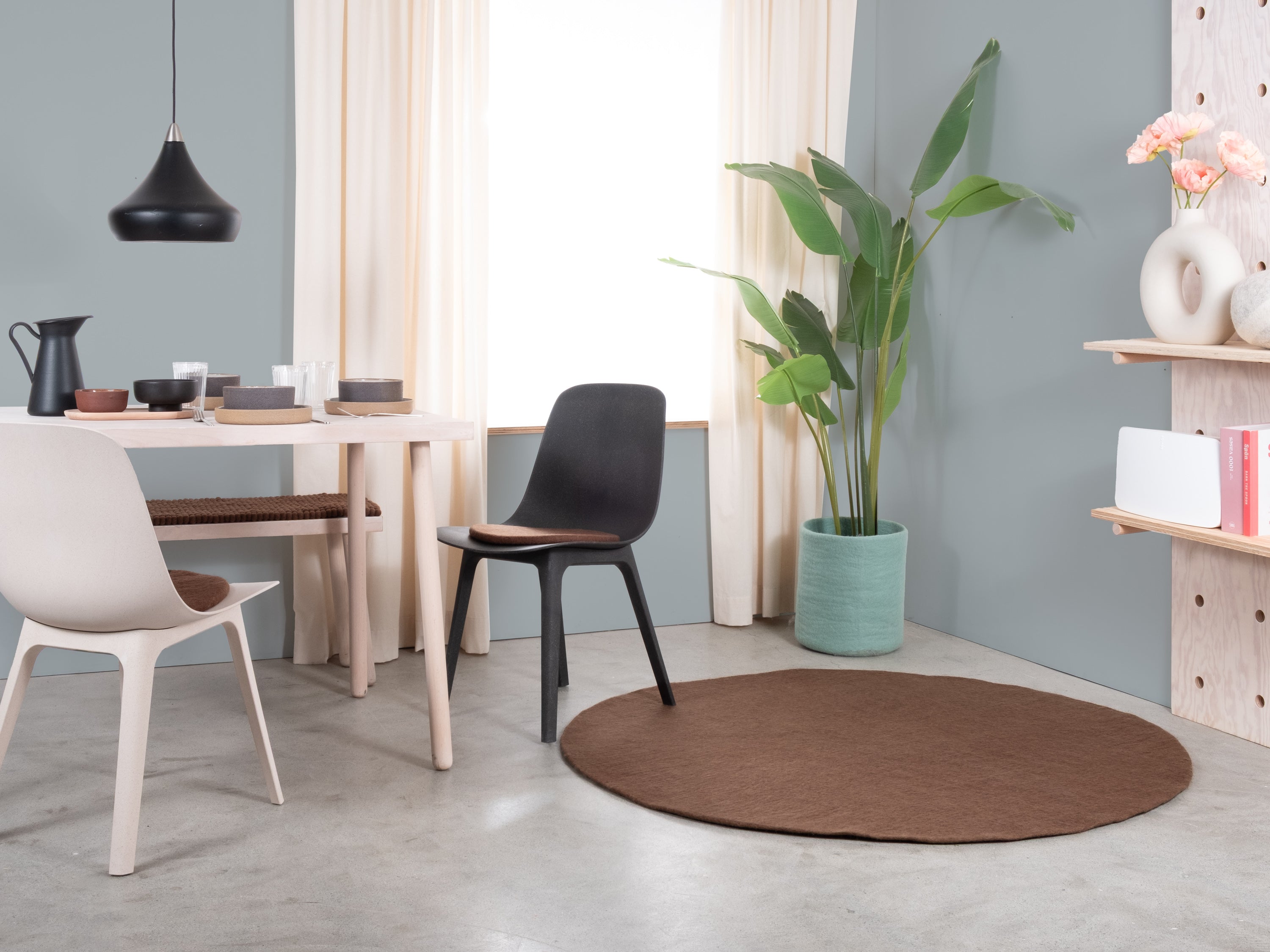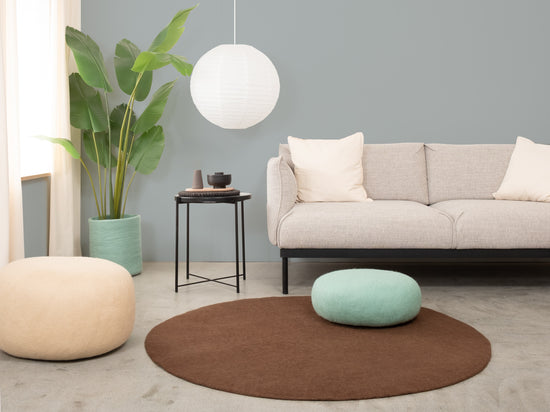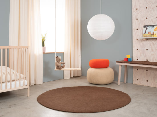 Egon comes in warm chocolate brown. This felt rug grounds any room, adding cosiness and structure. Ideal for reading corners and living areas that welcome warmth. Hard-wearing, keeps its shape and comfortable underfoot. Handcrafted in Nepal—100% pure new wool.