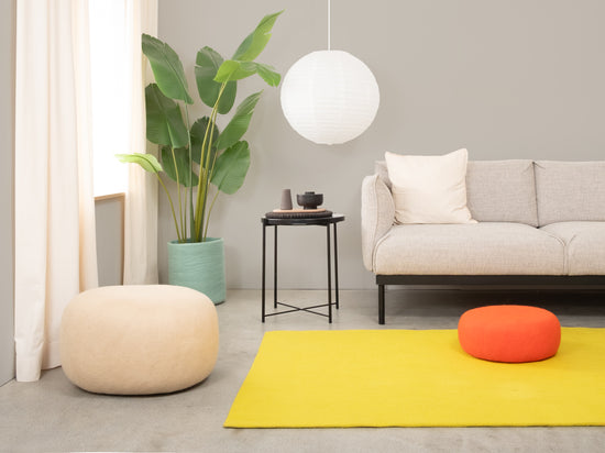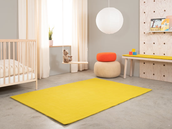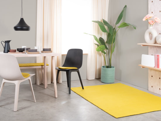 Kata is a felt rug in fresh yellow-green. Bright, vital and full of energy, it brings movement into the room. Whether as a cheerful accent in the living room or as a point of light in the work area. Kata ensures liveliness and lightness. Soft, robust and easy to care for. Handmade in Nepal from 100% pure new wool.