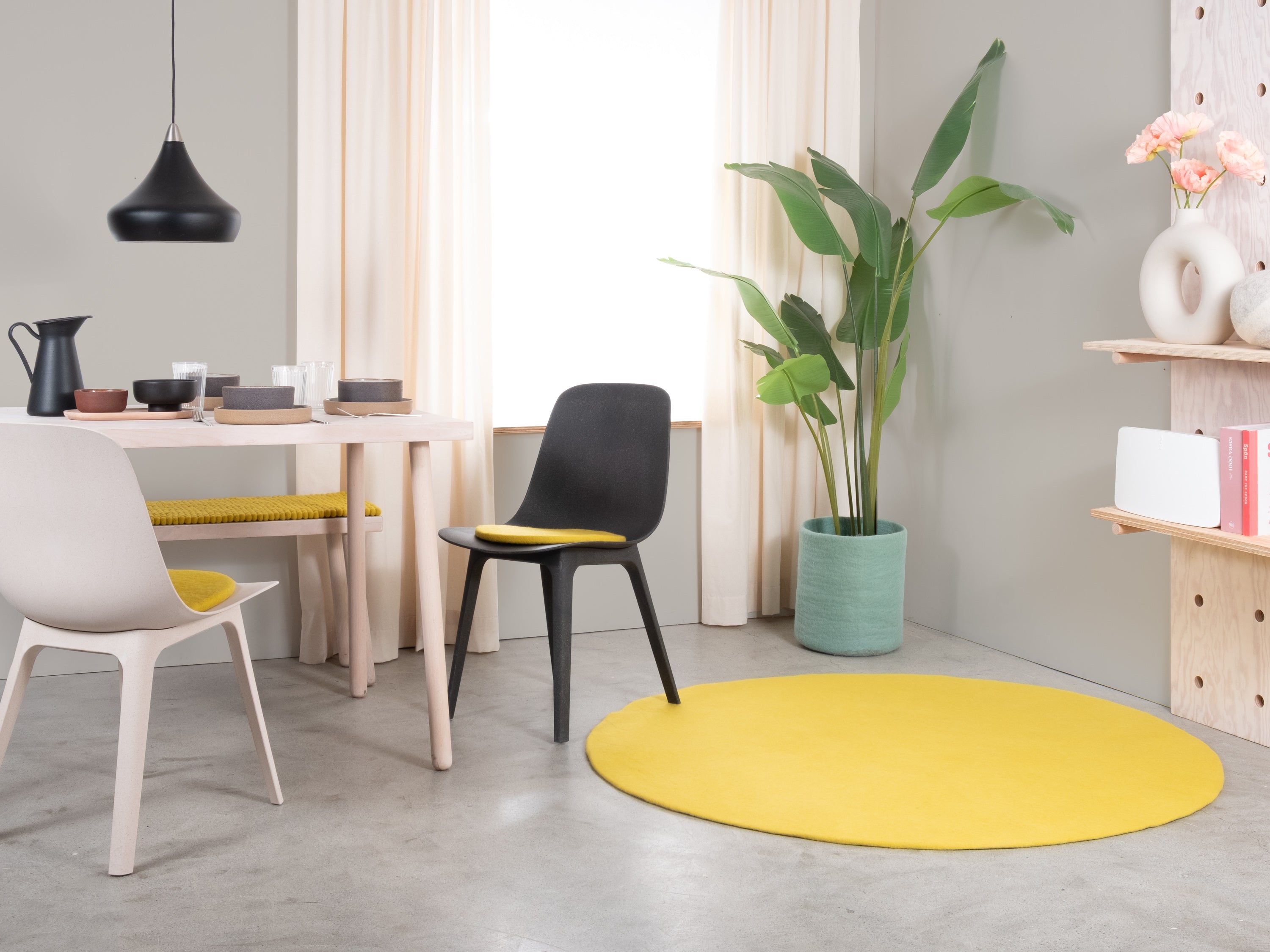 Kata is a felt rug in a fresh yellow-green. Bright, lively and full of energy, it brings movement to the room—cheerful in the living area or a point of light in your workspace. Adds vibrancy and lightness. Soft, robust and easy to care for. Handcrafted in Nepal from 100% pure new wool.