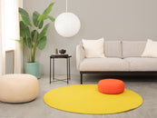 Round felt rug made of pure virgin wool.