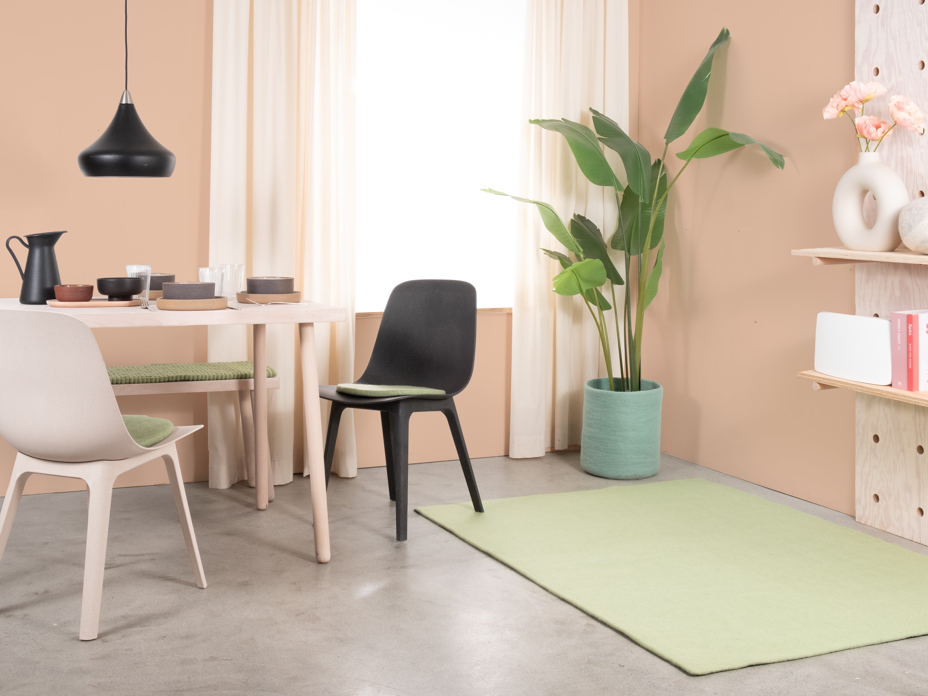 Lasse is a felt rug in gentle sage green. It brings calm and lightness into the room and harmonises with wood, white, and natural tones. Soft underfoot, durable in everyday life, and naturally dirt-repellent. Handmade in Nepal from 100% pure new wool.