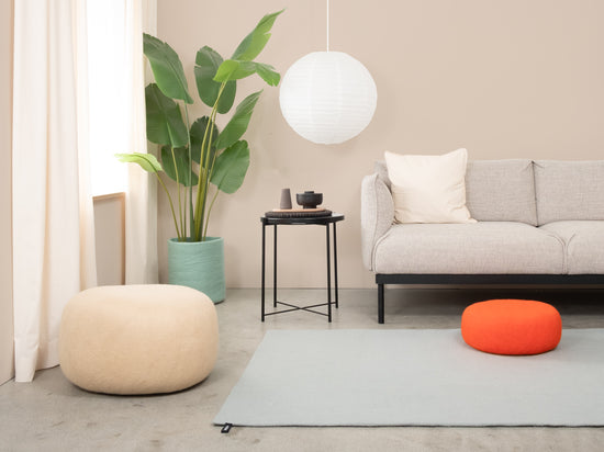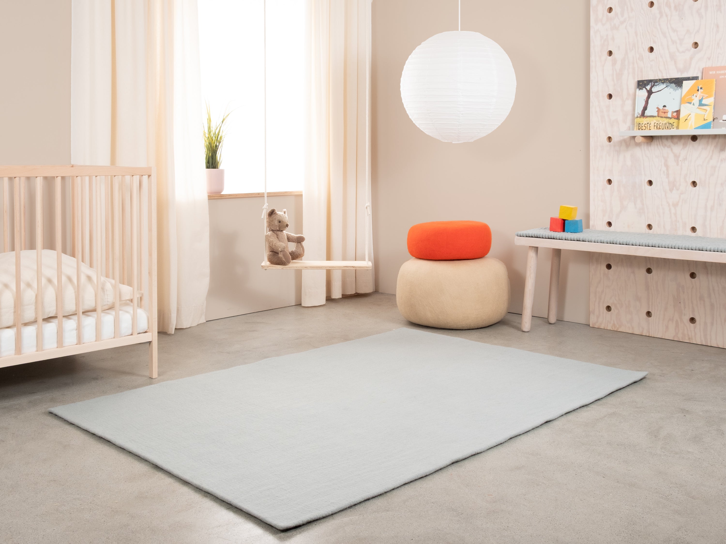 Liv is a felt rug in cool light blue. It brings clarity and lightness into the room and makes small spaces appear larger. Matches well with white, oak, and neutral tones – as a calm foundation or a fresh accent. Soft, sound-absorbing, and naturally dirt-repellent. Handmade in Nepal from 100% pure new wool.