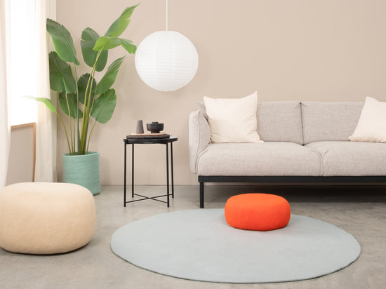 Liv is a felt rug in a cool light blue. It brings clarity and lightness and makes small rooms feel larger. Pairs with white, oak and neutral tones—either as a calm base or a fresh accent. Soft, sound-dampening and naturally dirt-repellent. Handcrafted in Nepal from 100% pure new wool.