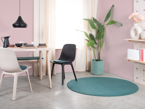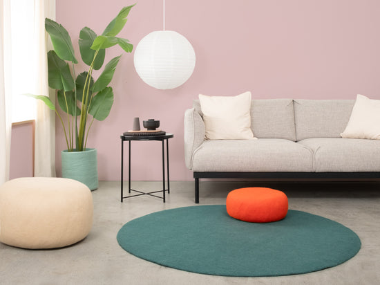 Noah is a felt ball rug in deep petrol. Powerful, clear and still relaxing—use as a statement piece or a quiet base. Works with light wood, concrete and neutral colours. Noticeably soft, durable and easy to care for. Handcrafted in Nepal from 100% pure new wool.
