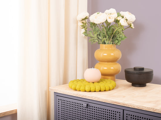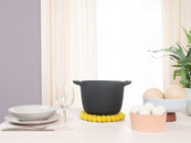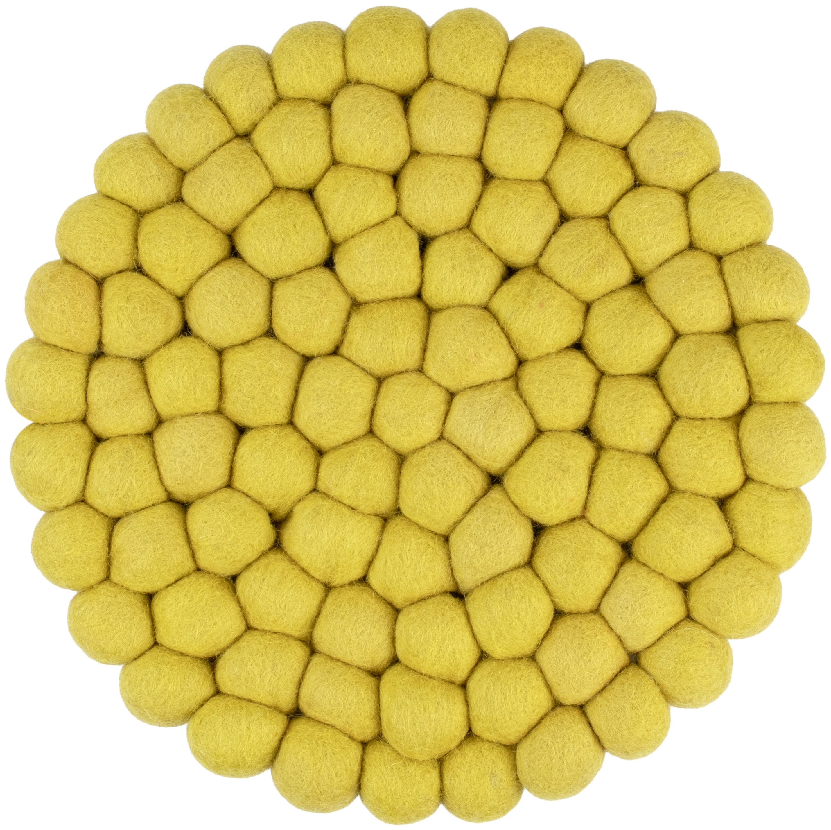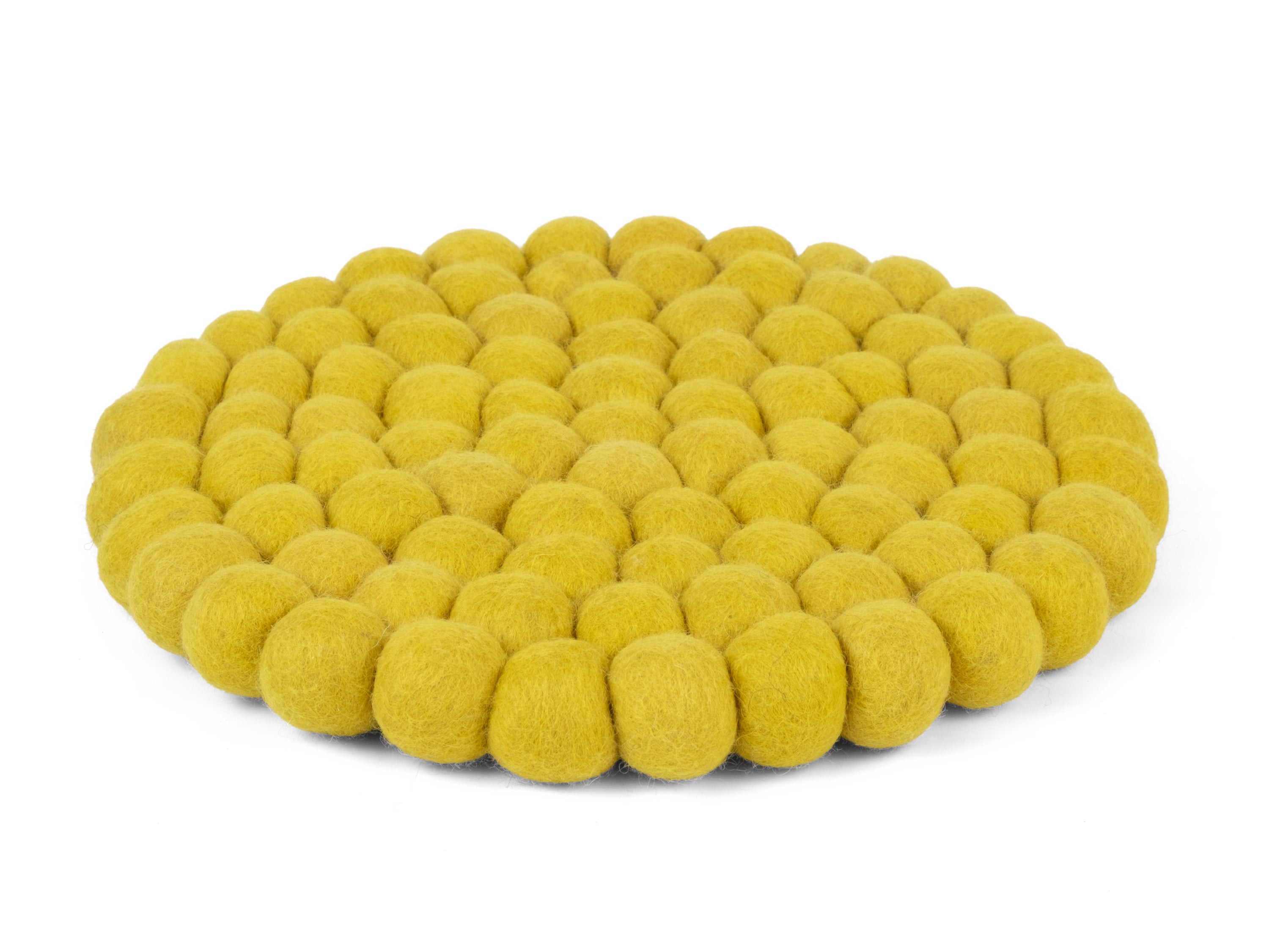 The trivet Kata in the colour green-yellow combines functionality with charming design. Robust, heat-resistant, water- and dirt-repellent, and reversible. Made from pure new wool, handcrafted in Nepal under fair conditions.