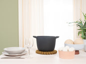 The trivet Omar in the colour caramel combines functionality with charming design. Robust, heat-resistant, water- and dirt-repellent, and reversible. Made from pure new wool, handcrafted in Nepal under fair conditions.