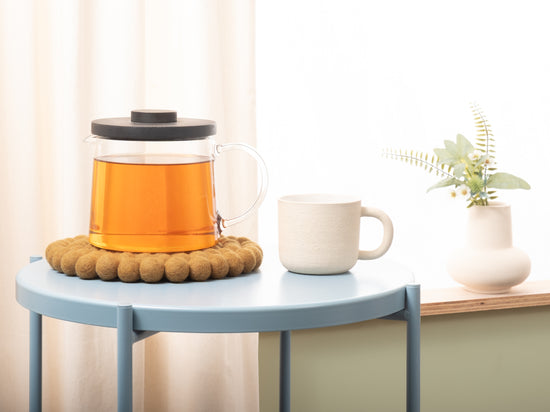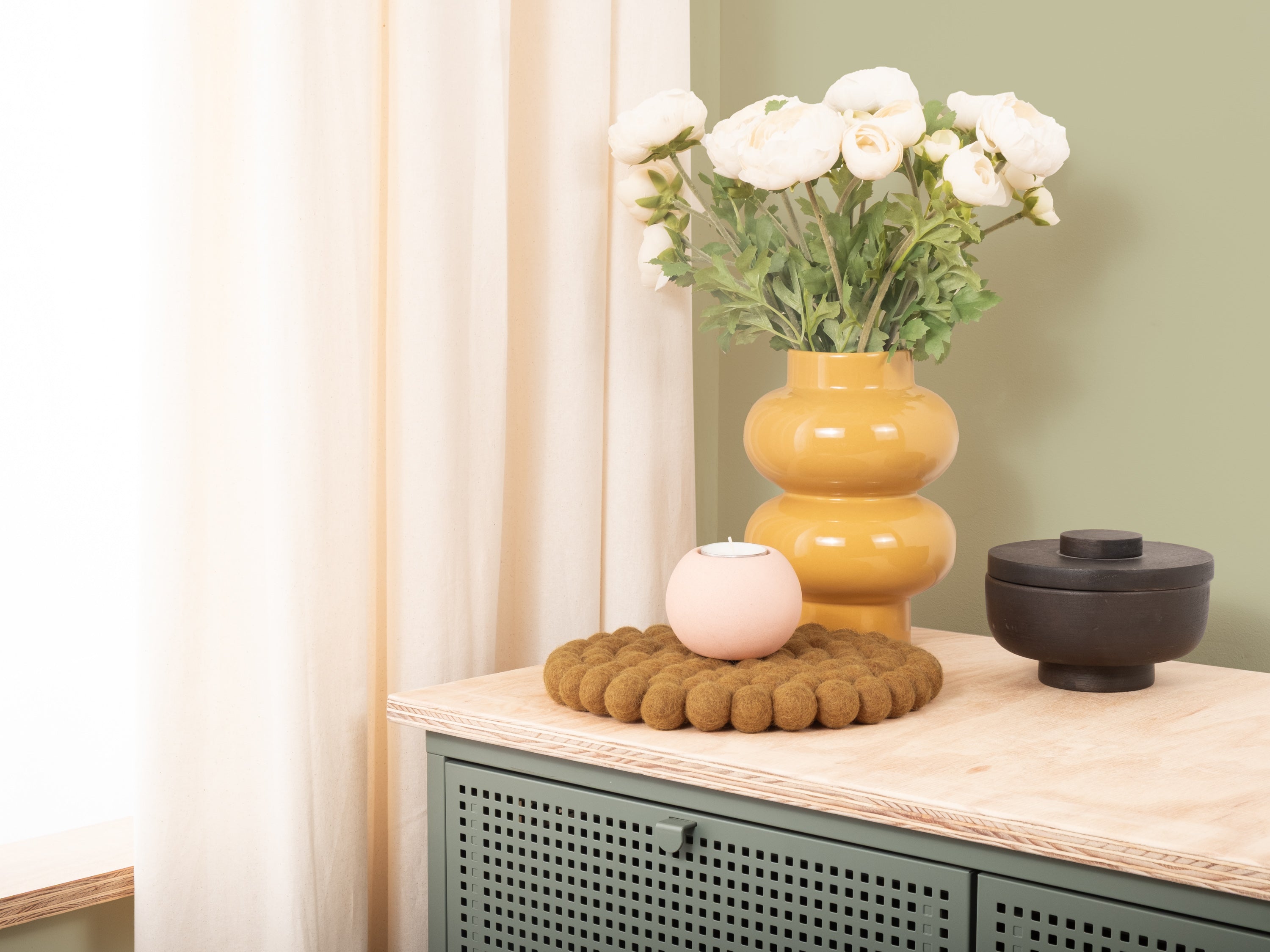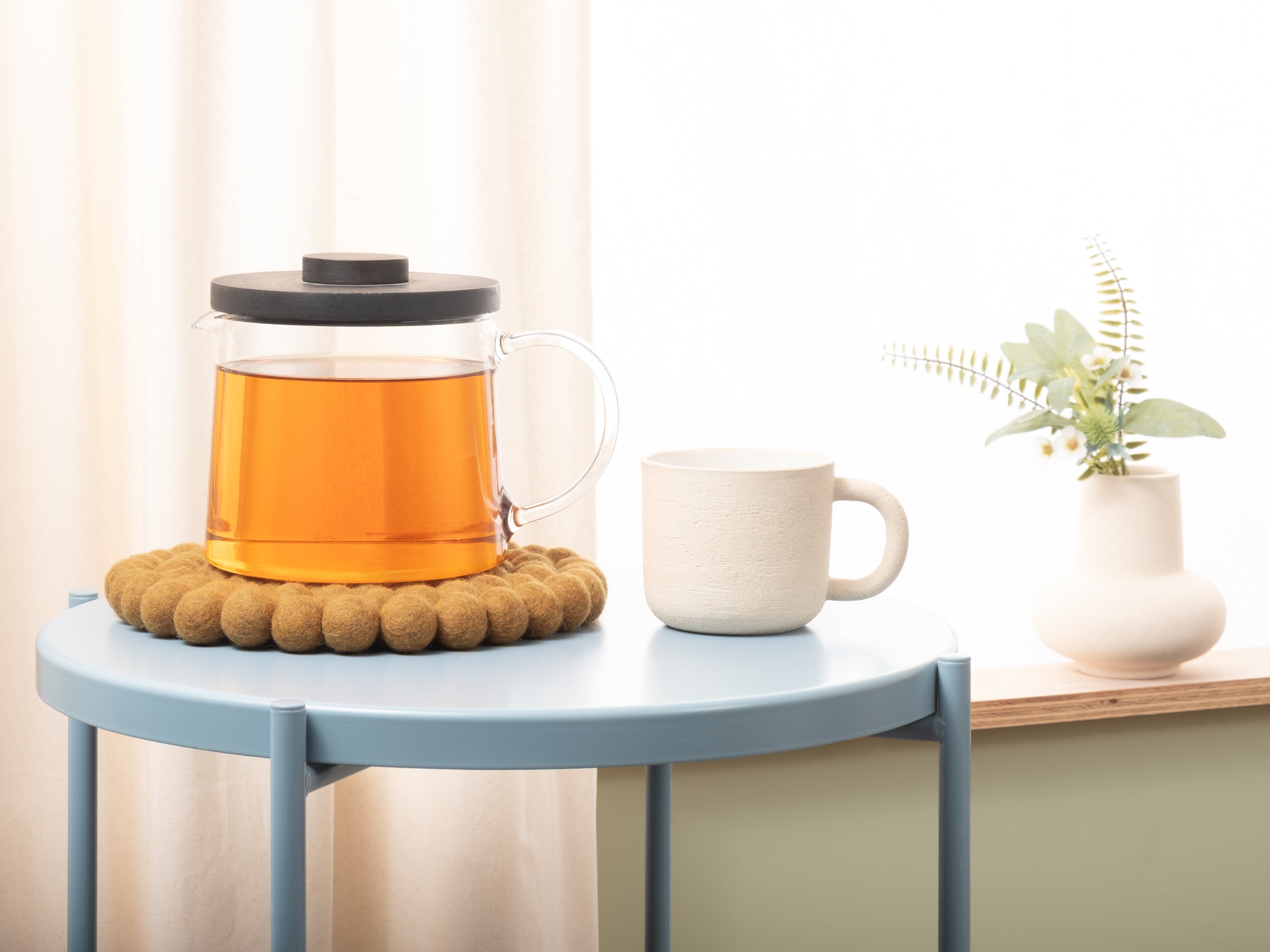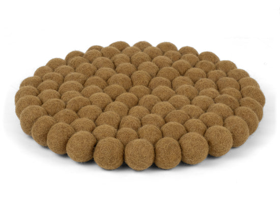Round, caramel-coloured trivet made of pure new wool | myfelt