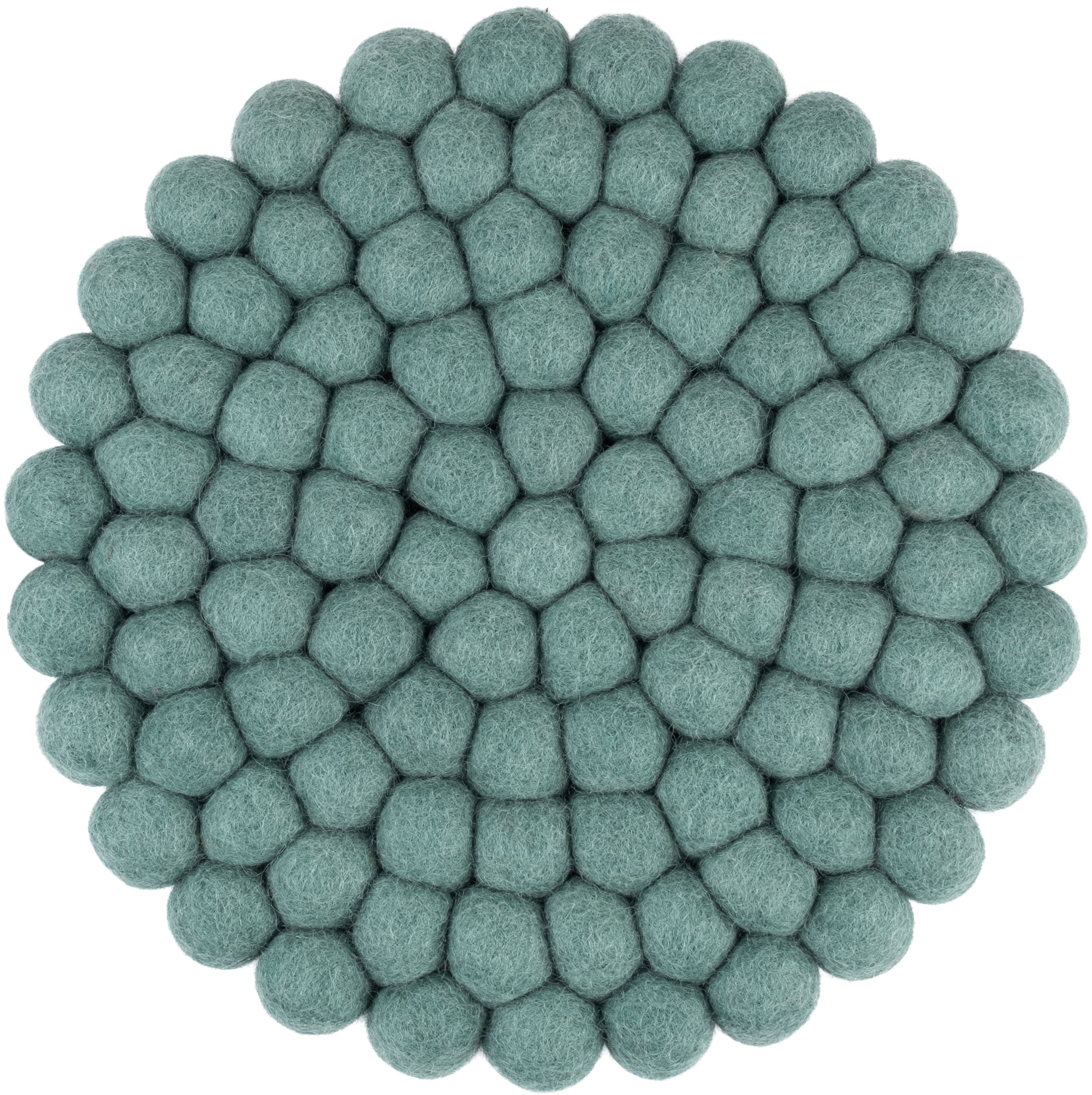 Round, aqua-coloured trivet made of pure new wool | myfelt